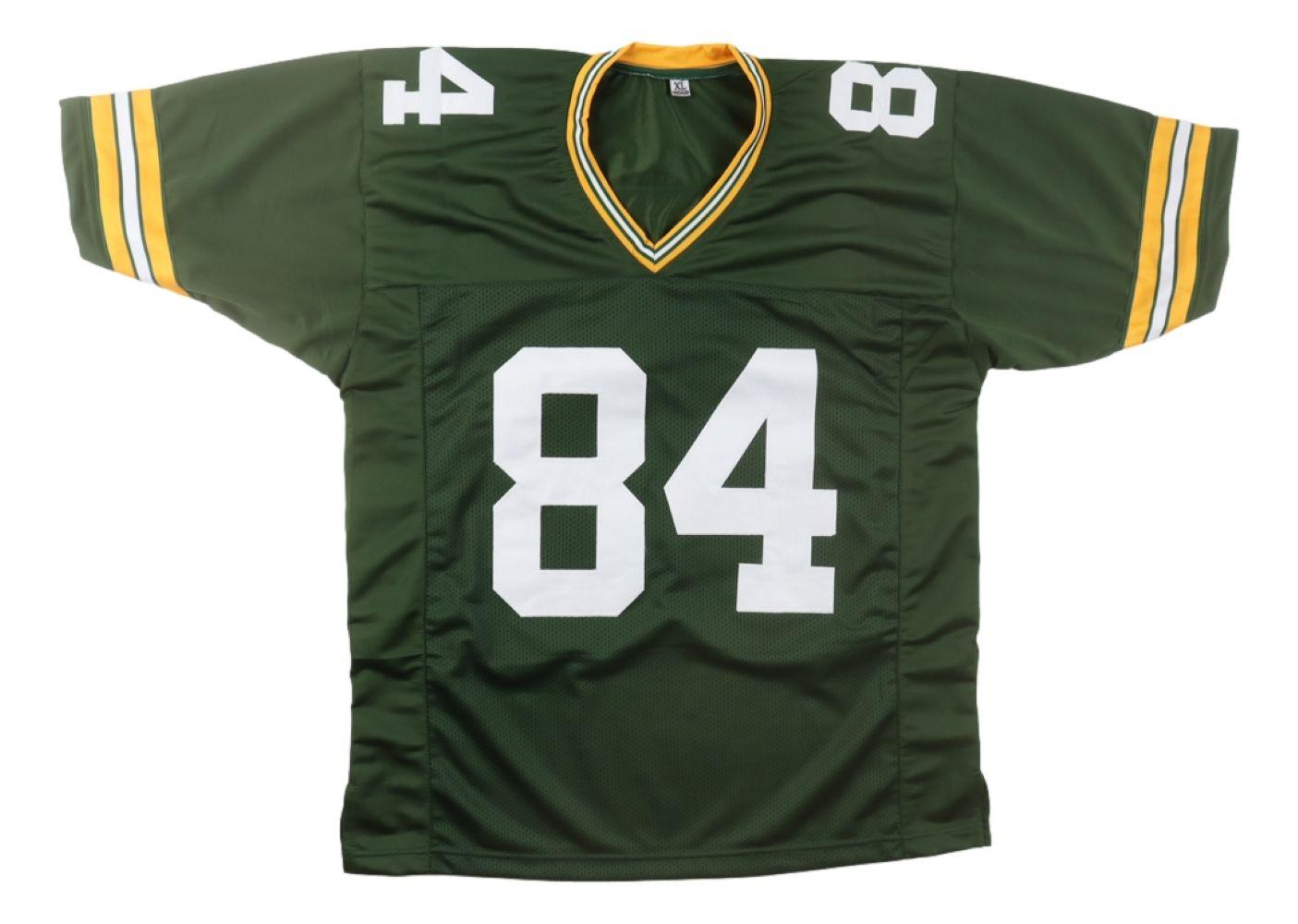 Custom jersey with everything sewn on, size XL. Hand-signed by Sterling Sharpe (HOF).