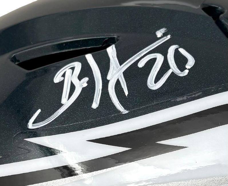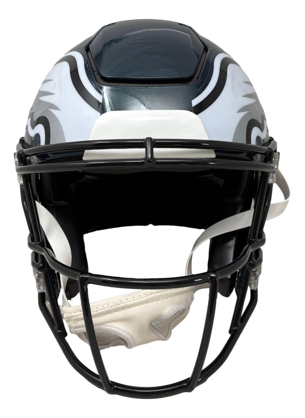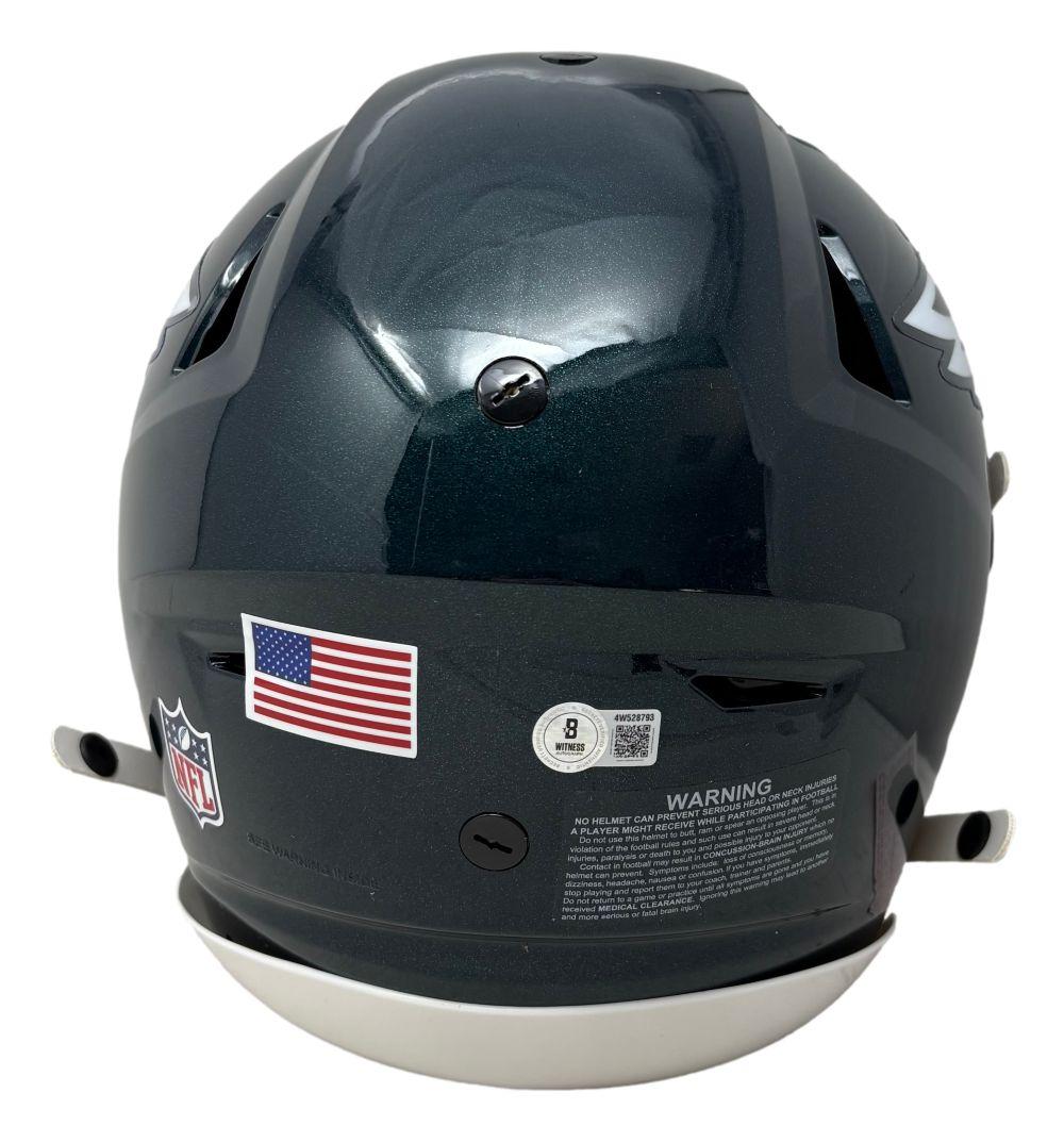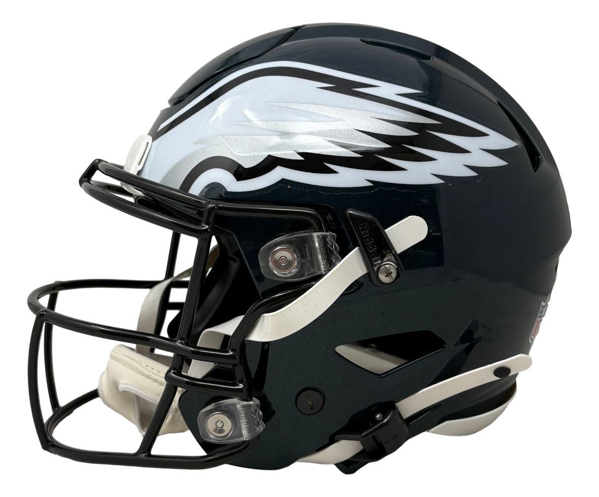 Riddell Philadelphia Eagles full-size authentic on-field speedflex helmet has been hand-signed by Brian Dawkins (HOF).