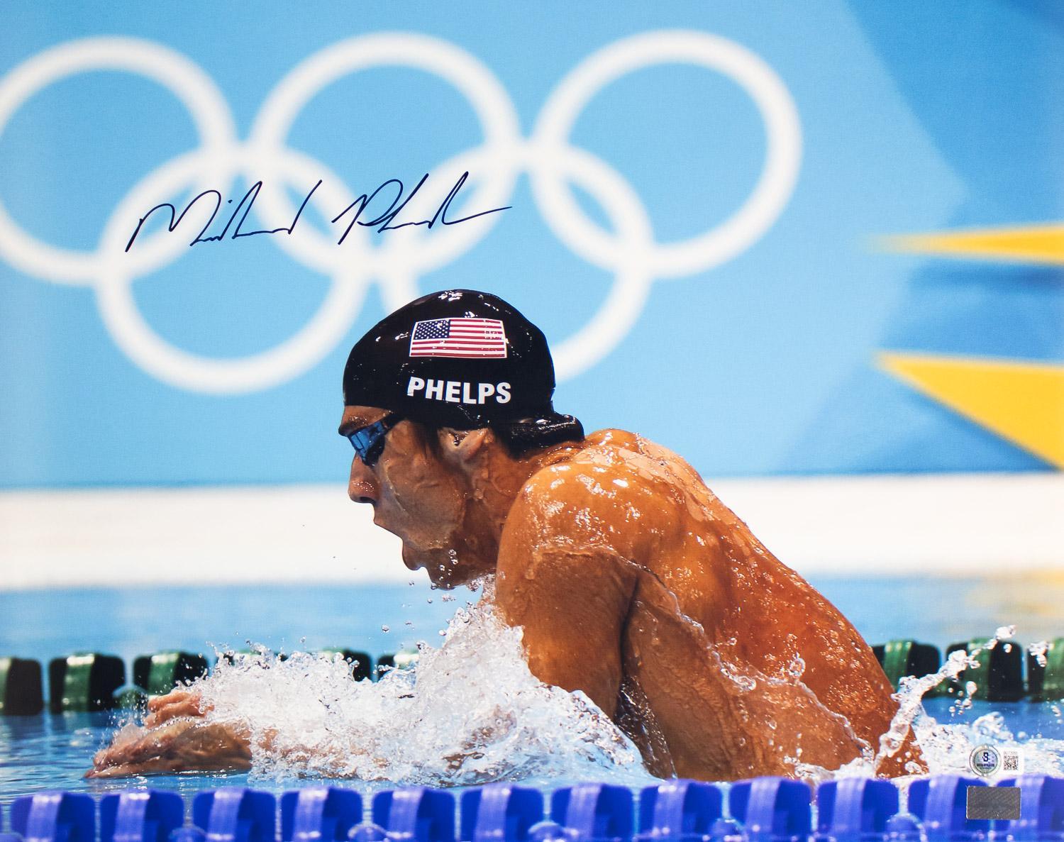 Photo measures 16” x 20” in size and has been hand-signed by Michael Phelps.