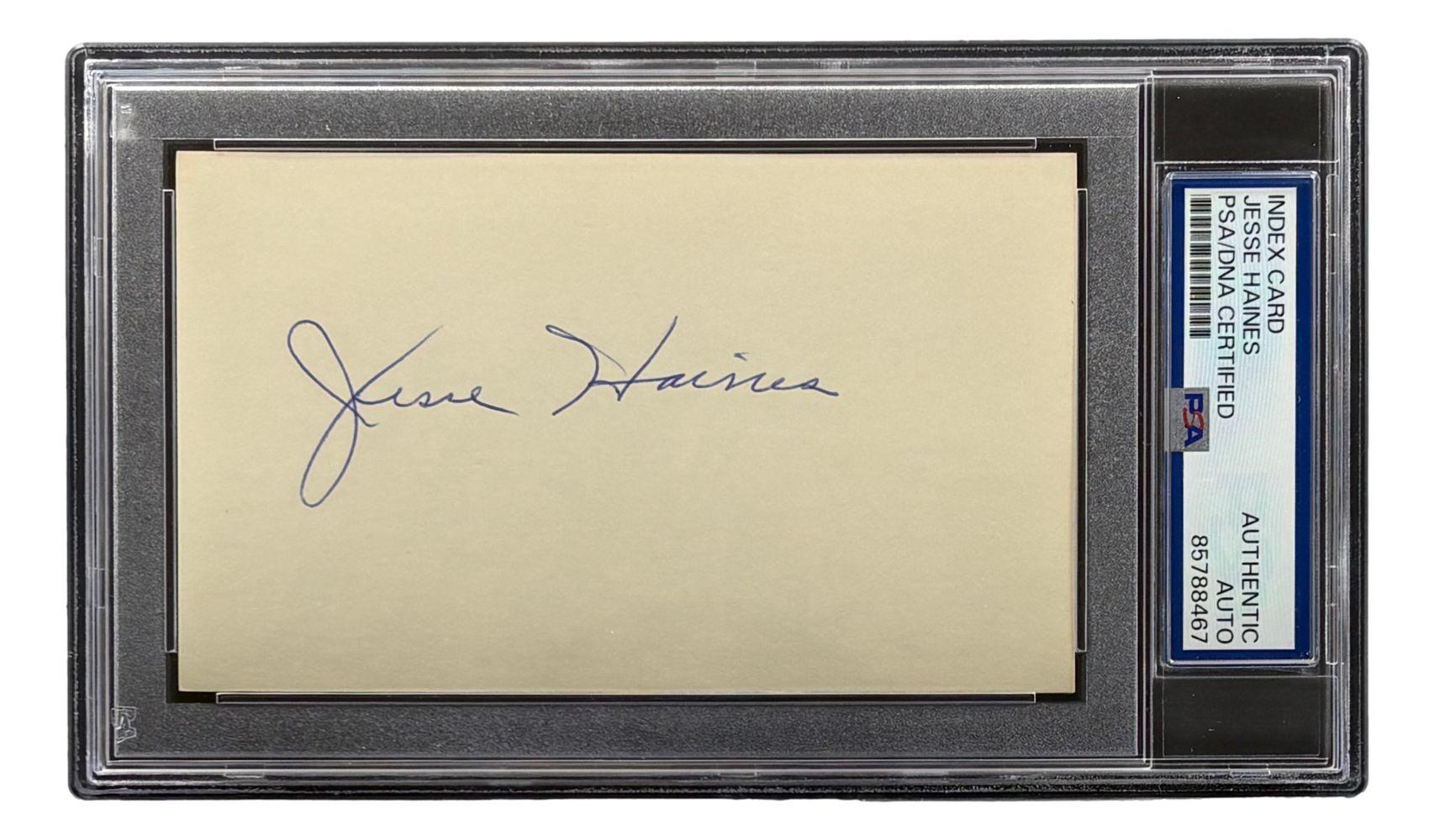 Jesse Haines Signed 3x5 Index Card (PSA)
