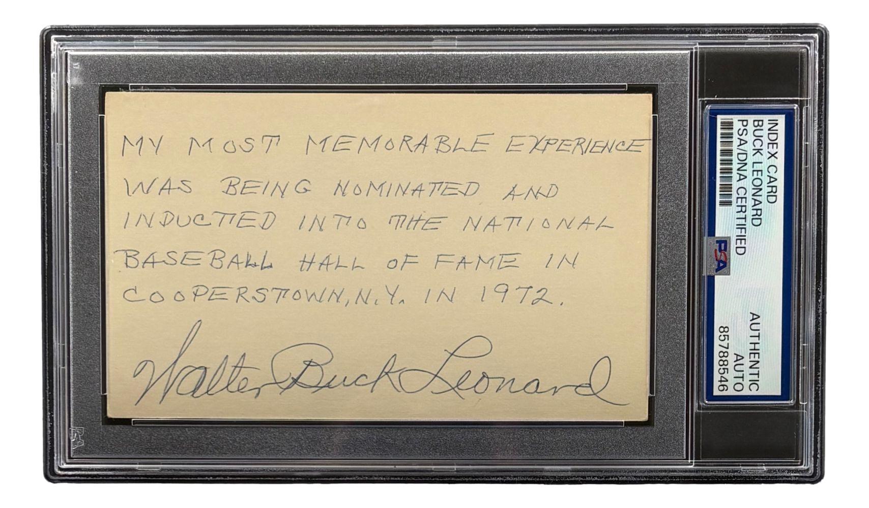Buck Leonard Signed 3x5 Index Card with Extensive Inscription (PSA)