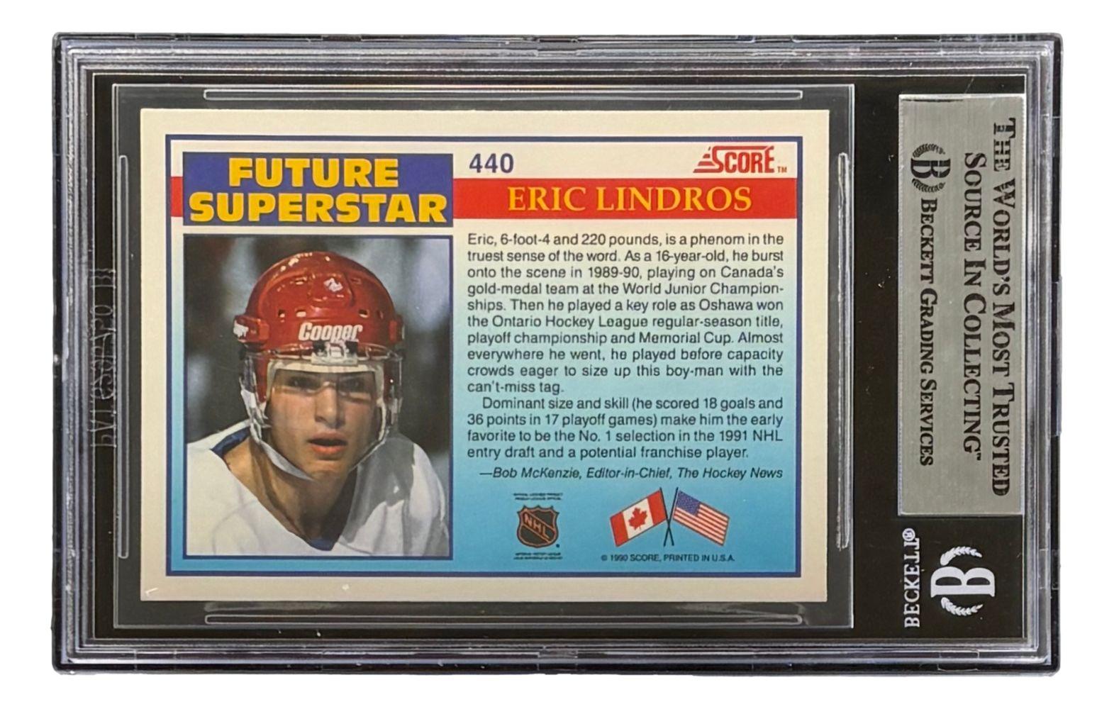 Eric Lindros Signed 1990-91 Score #440 RC Inscribed "HOF 16" (BGS)