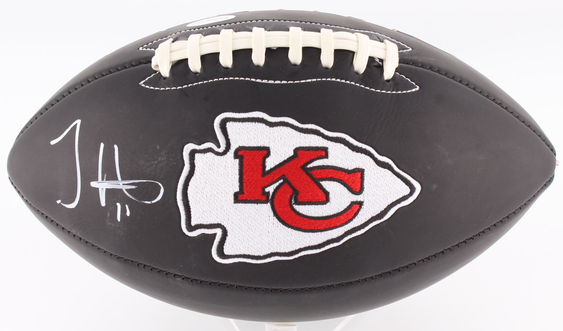 Kansas City Chiefs Full-Size Logo Football. Hand-signed in silver paint pen by Tyreek Hill.