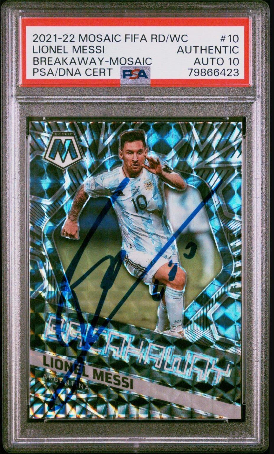 Lionel Messi Signed 2021-22 Panini Mosaic Road to the FIFA World Cup Qatar Breakaway Mosaic #10 (PSA | Auto 10)