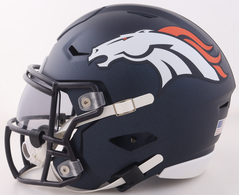 Riddell Denver Broncos Mid-Size SpeedFlex helmet with visor. Hand-signed by Talanoa Hufanga.
