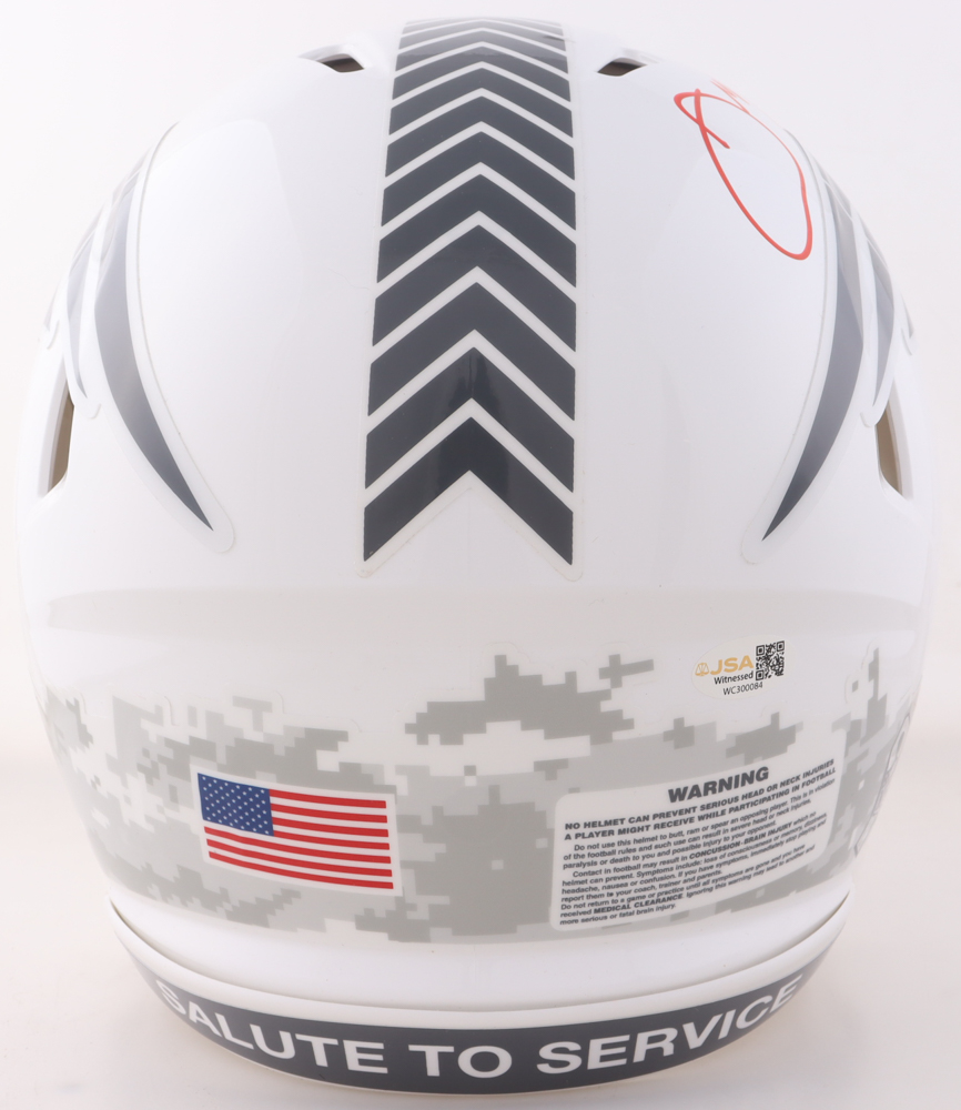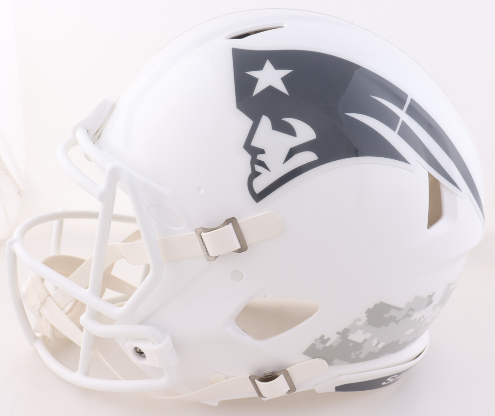 Riddell New England Patriots full-size authentic on field Salute To Service Alternate speed helmet. Hand-signed by Julian Edelman.