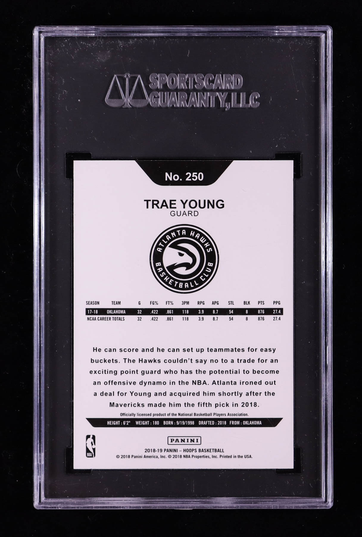 Trae Young 2018-19 Hoops #250 RC (SGC 10)