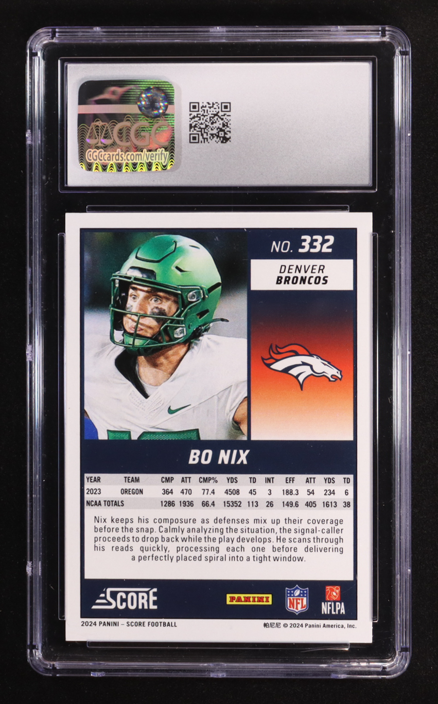Bo Nix 2024 Score #332 RC (CGC 10)