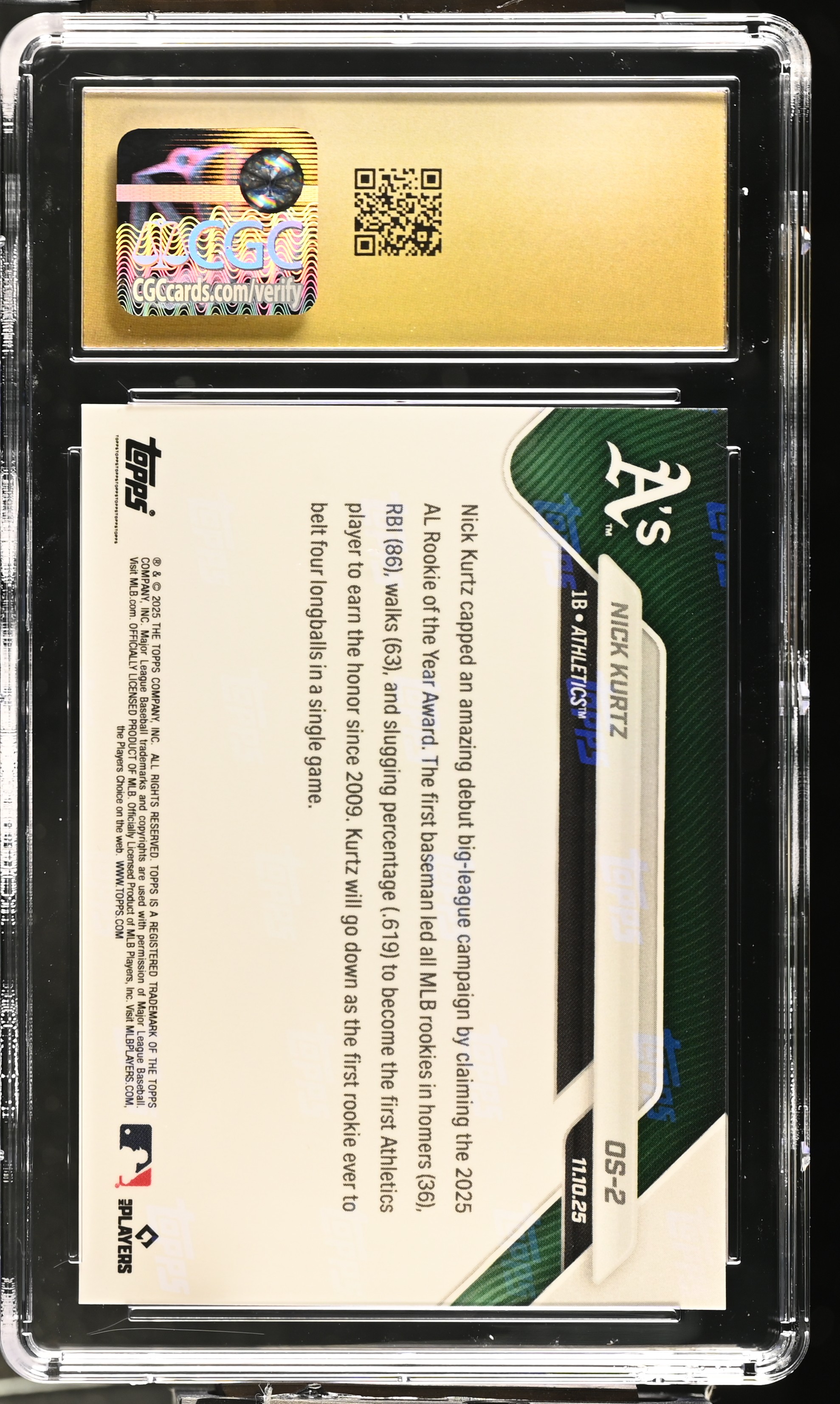 Nick Kurtz 2025 Topps Now Off-Season #OS2 RC (CGC 10 | Pristine Black Label)