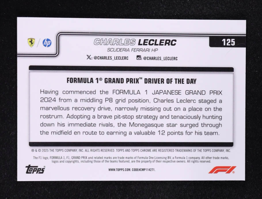Charles Leclerc 2025 Topps Chrome Formula 1 Pink Refractors #125 DOD #114/250