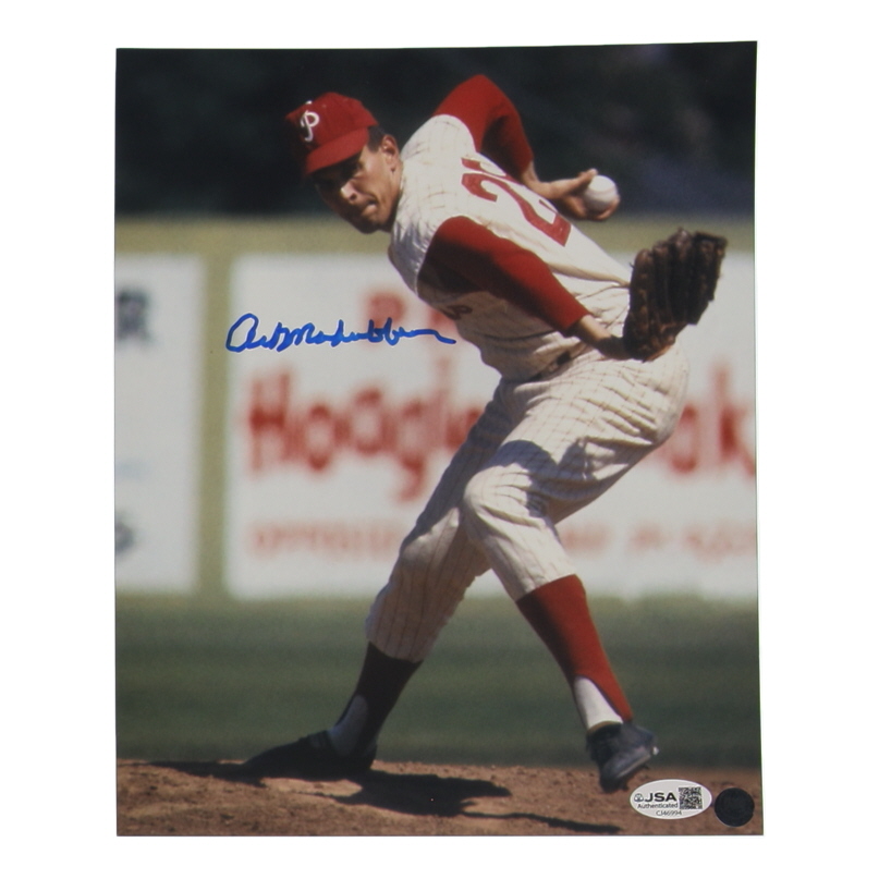 Photo measures 8" x 10" in size and has been hand-signed by Art Mahaffey (Philadelphia Phillies).