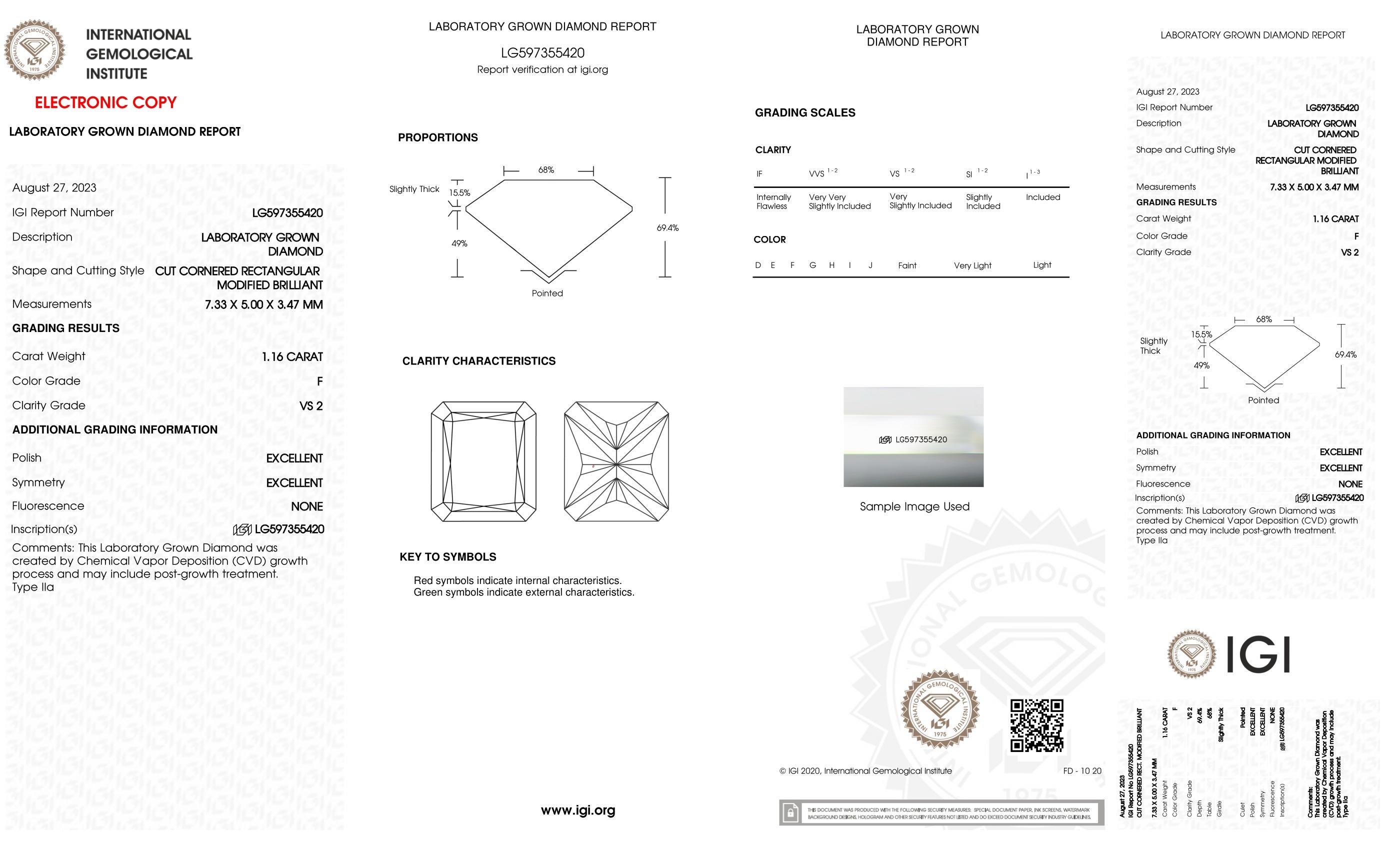 Includes IGI Laboratory Grown Diamond Report LG597355420