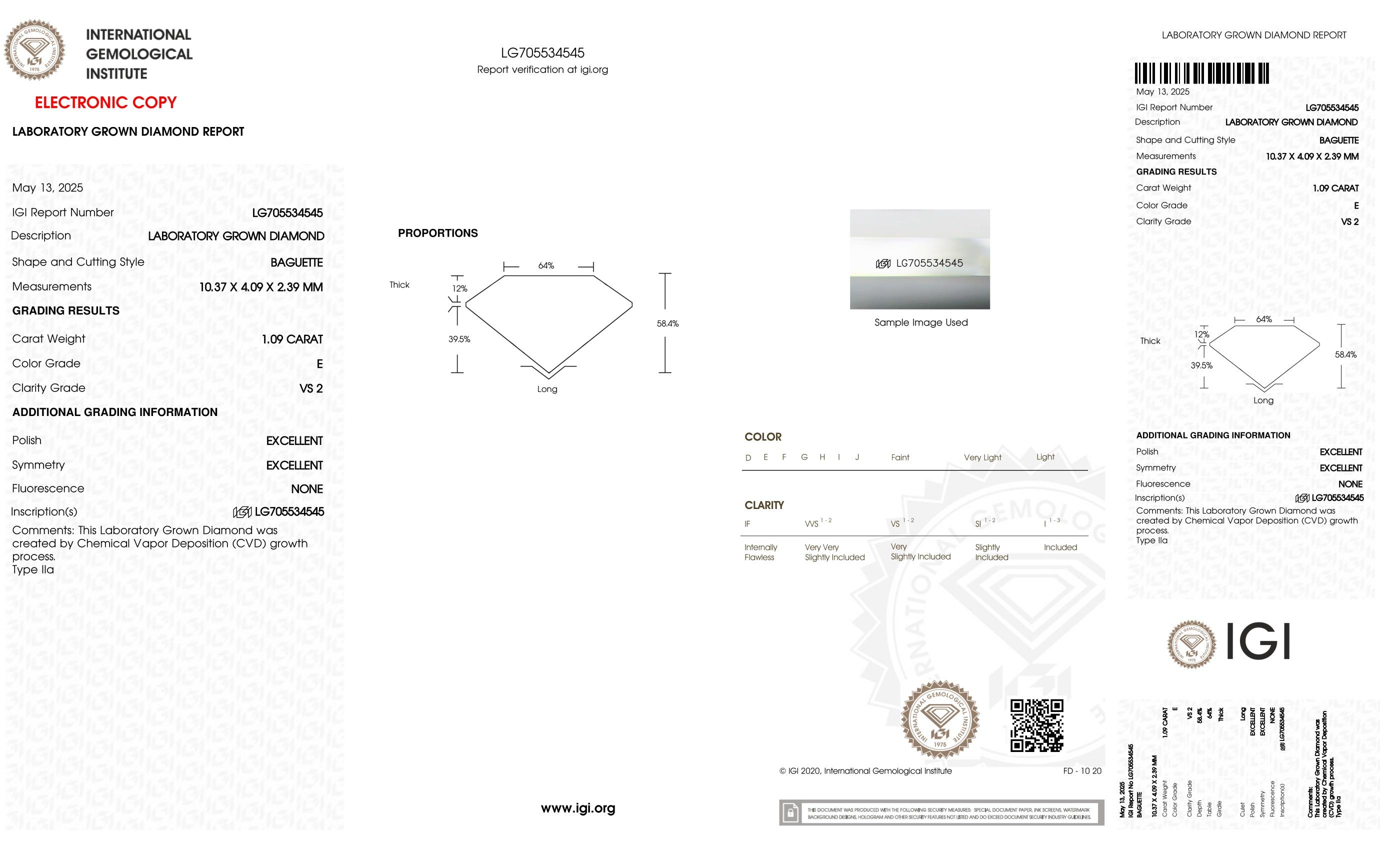 This piece includes paperwork from the International Gemological Institute (IGI).