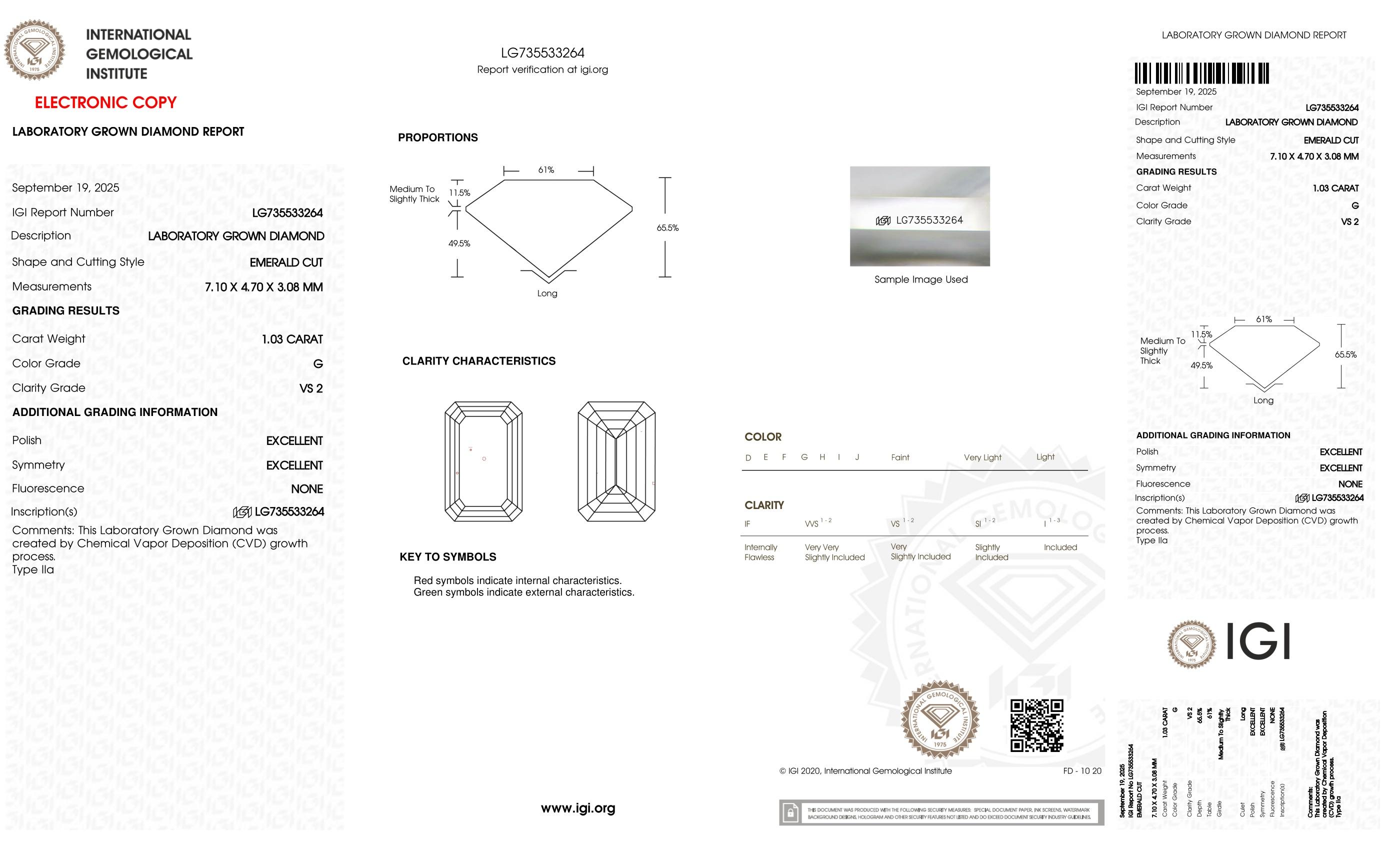 This piece includes paperwork from the International Gemological Institute (IGI).