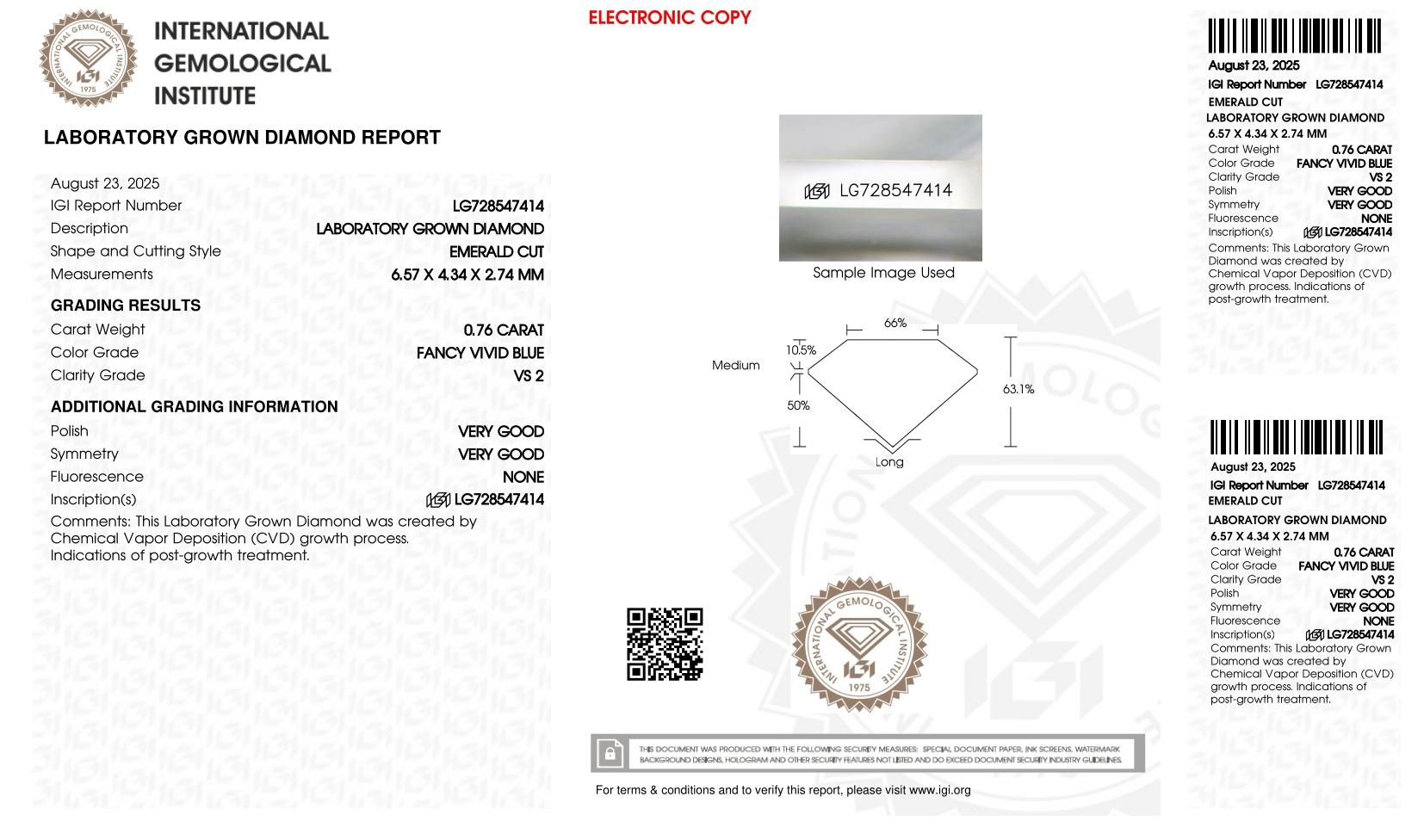 .76 Carats Lab Grown FANCY VIVID BLUE Diamond Loose VS2 | IGI Cert