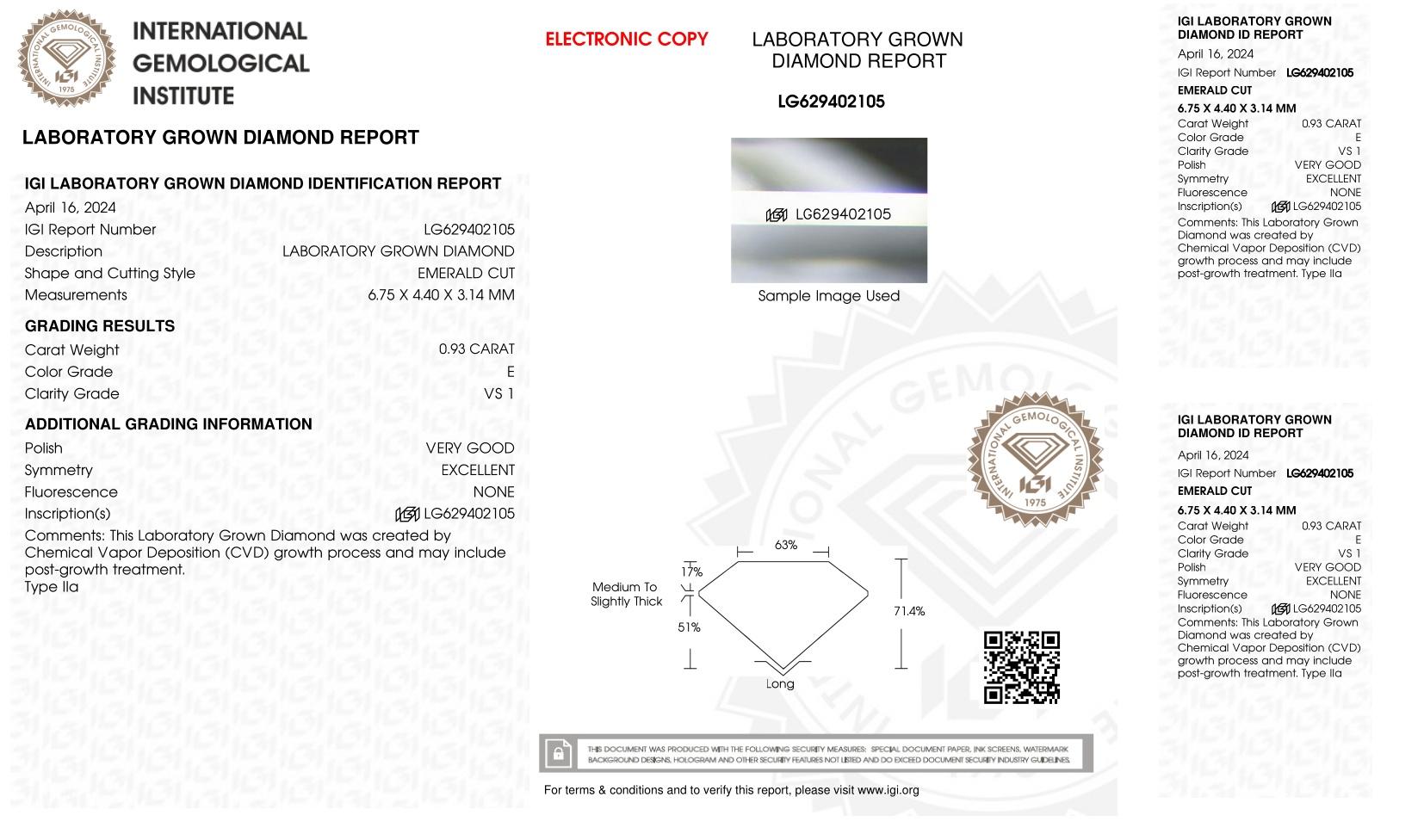 This piece includes paperwork from the International Gemological Institute (IGI).