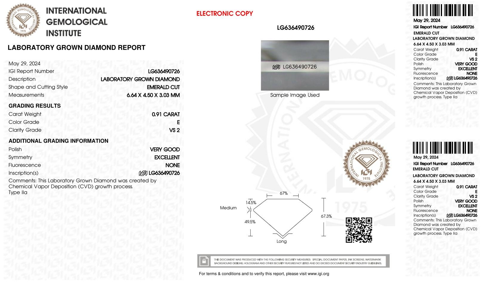 .91 Carats Lab Grown Diamond Loose E, VS2 | IGI Cert
