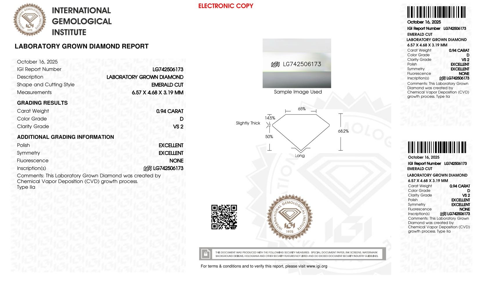 This piece includes paperwork from the International Gemological Institute (IGI).