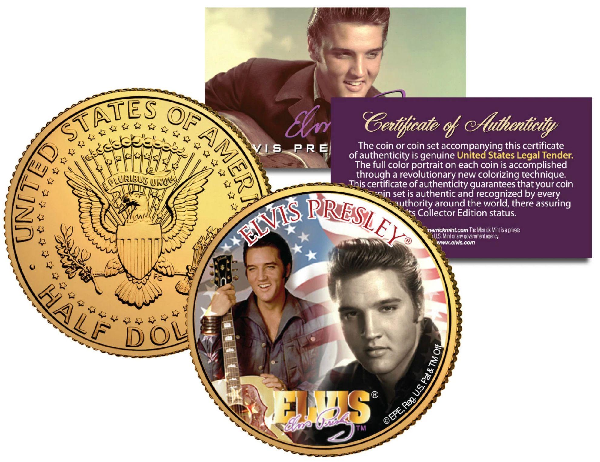 Elvis Presley 24K Gold Plated JFK Half Dollar Coin