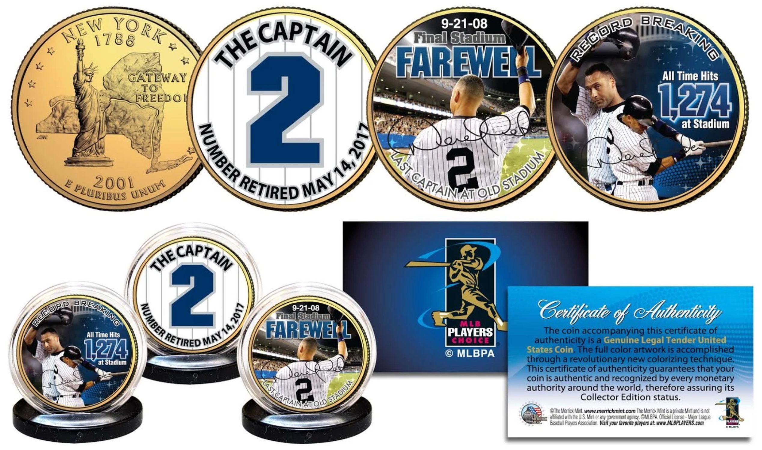 Derek Jeter Yankees Set of (3) Gold Plated New York Quarters