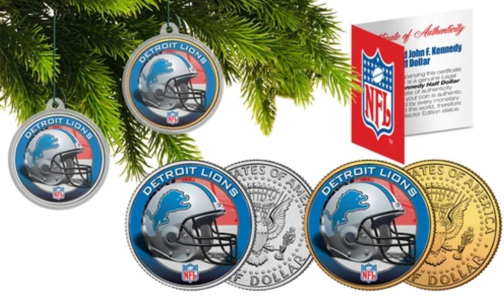 Lions Set of (2) Christmas Tree Ornaments JFK Half Dollar Coins