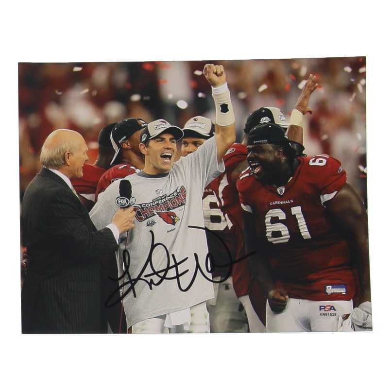 Photo measures 8x10 in size. Hand-signed by Kurt Warner (Arizona Cardinals, HOF).