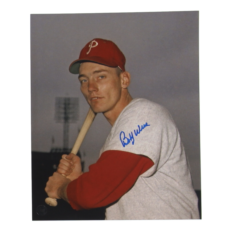 Photo measures 8" x 10" in size and has been hand-signed by Bobby Wine (Philadelphia Phillies).
