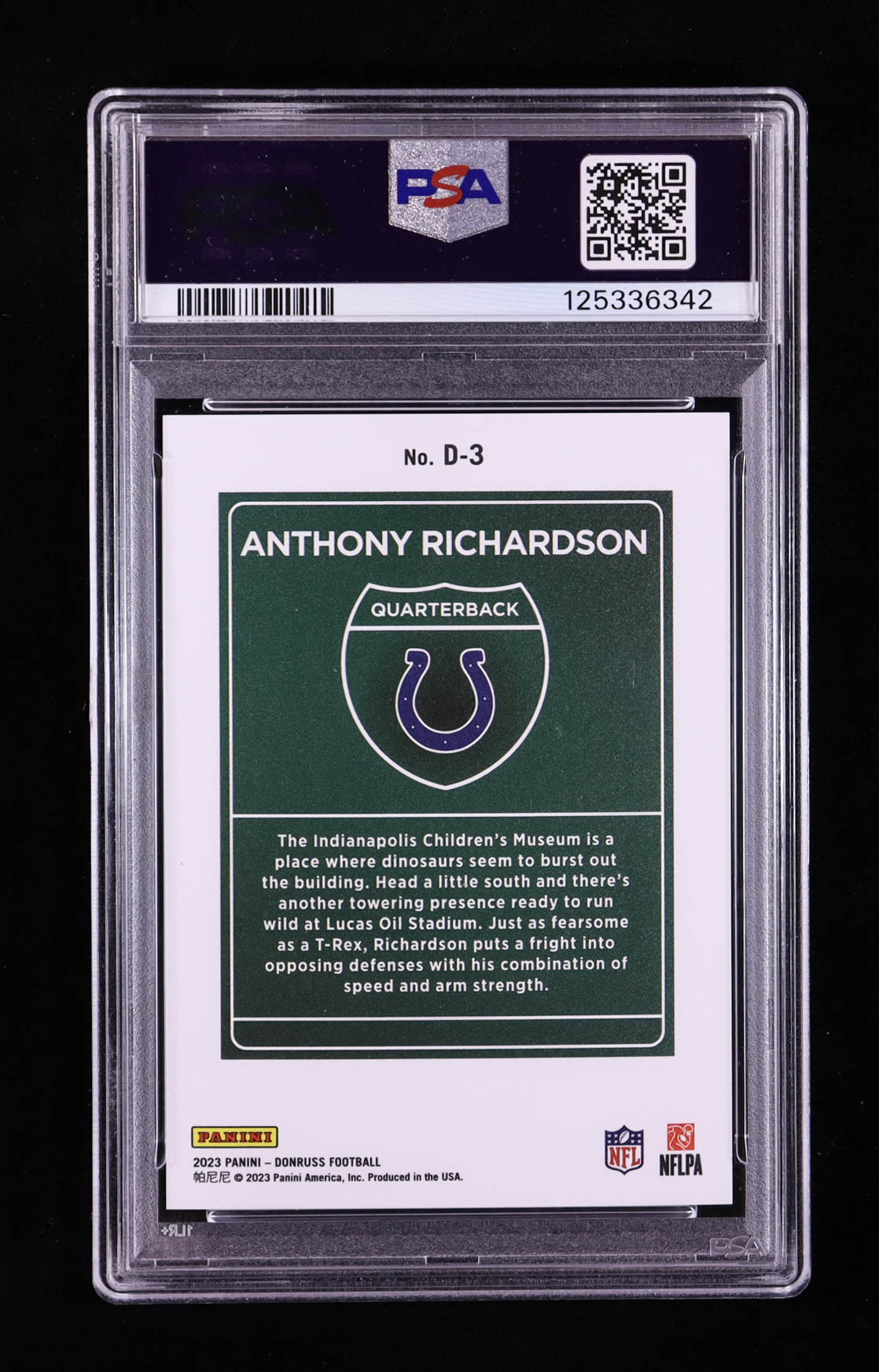Anthony Richardson 2023 Donruss Downtown #3 RC (PSA 9)