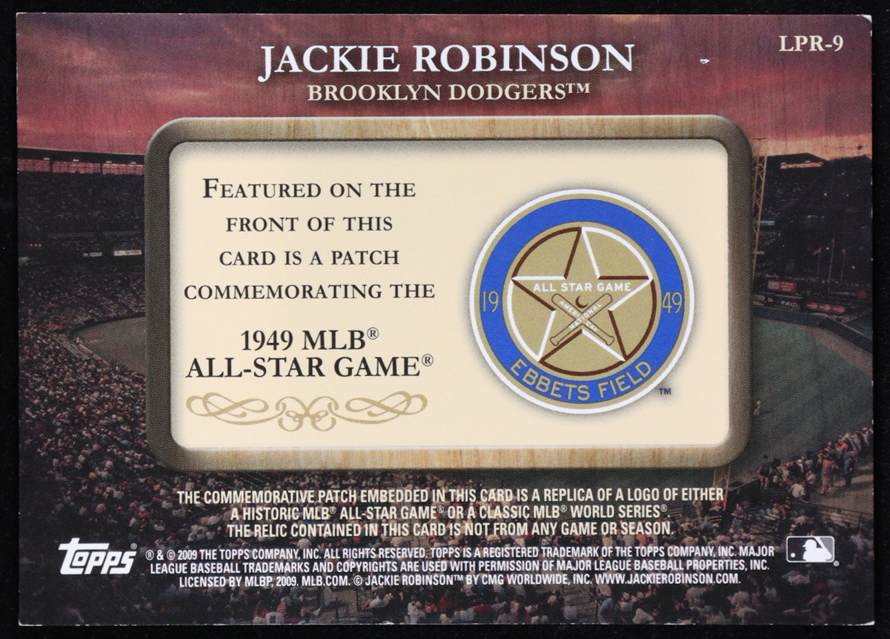 Jackie Robinson 2009 Topps Historical Commemorative Patch 1949 MLB All-Star Game #LPR-9