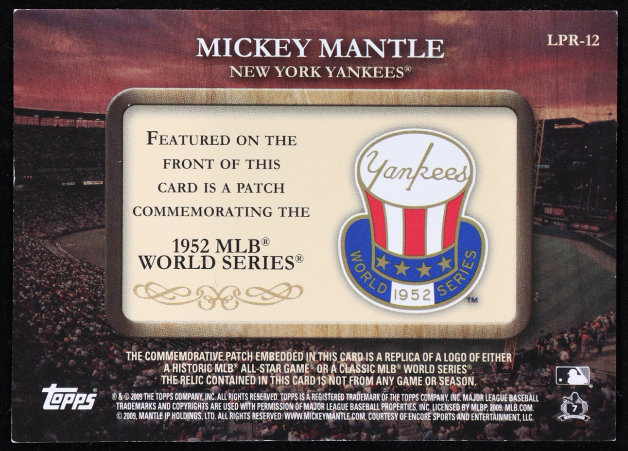 Mickey Mantle 2009 Topps Historical Commemorative Patch 1949 MLB World Series #LPR-12