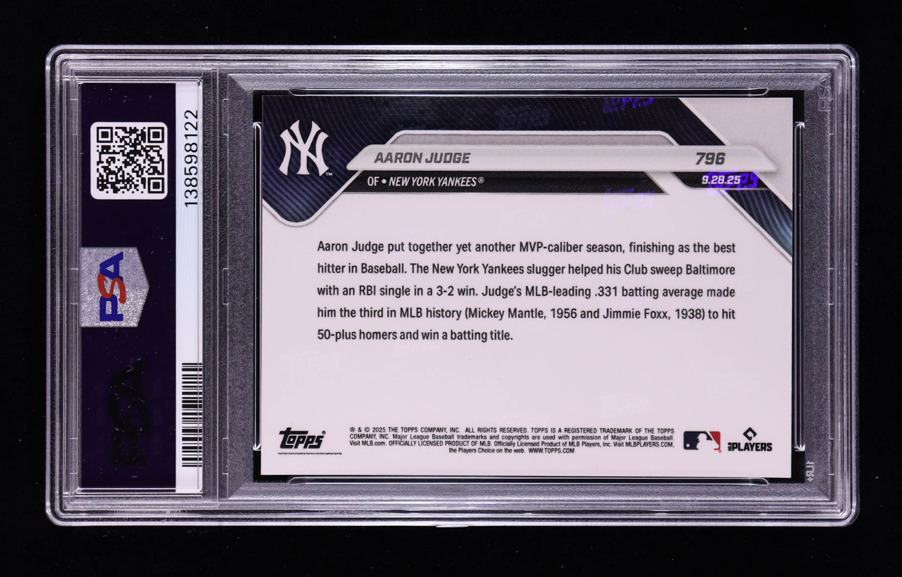 Aaron Judge 2025 Topps Now #796 (PSA 10)