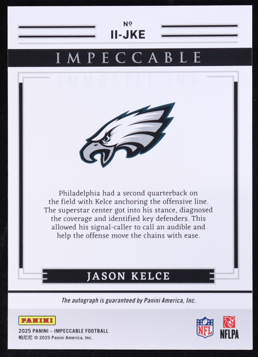 Jason Kelce 2025 Panini Impeccable Immortal Ink #10 #46/75