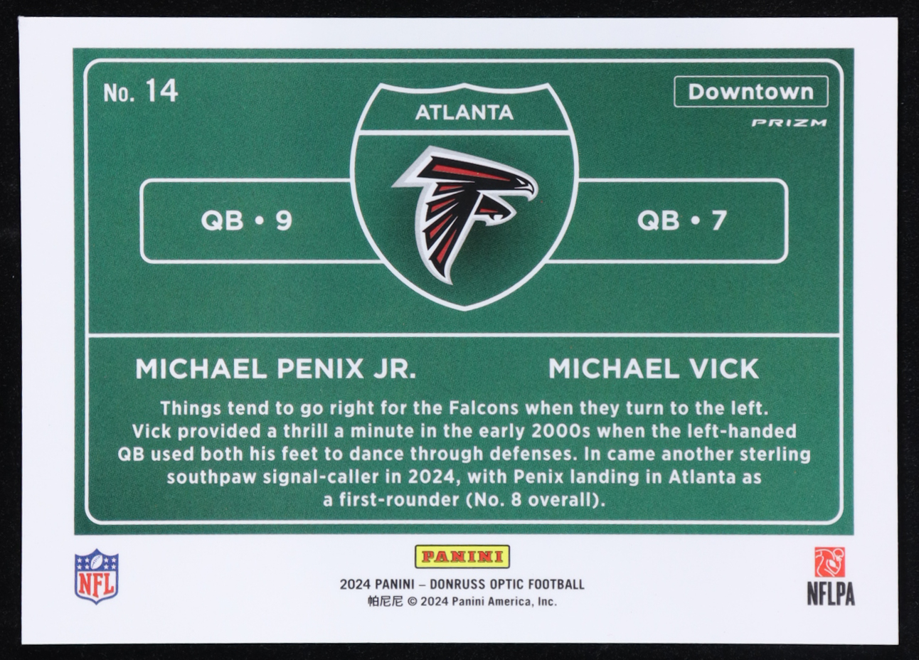 Michael Penix Jr. / Michael Vick 2024 Panini Donruss Optic Downtown #14 RC
