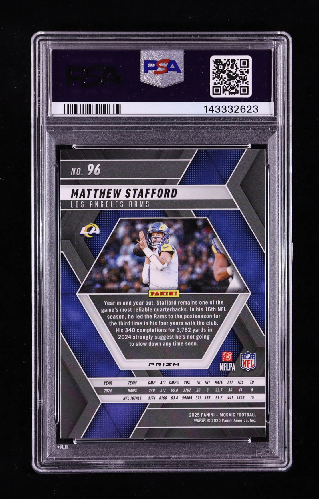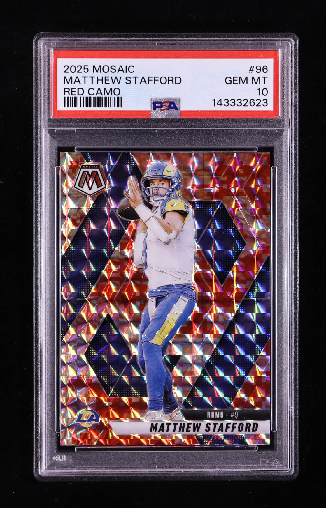 Matthew Stafford 2025 Panini Mosaic Mosaic Camo Red #96 (PSA 10)