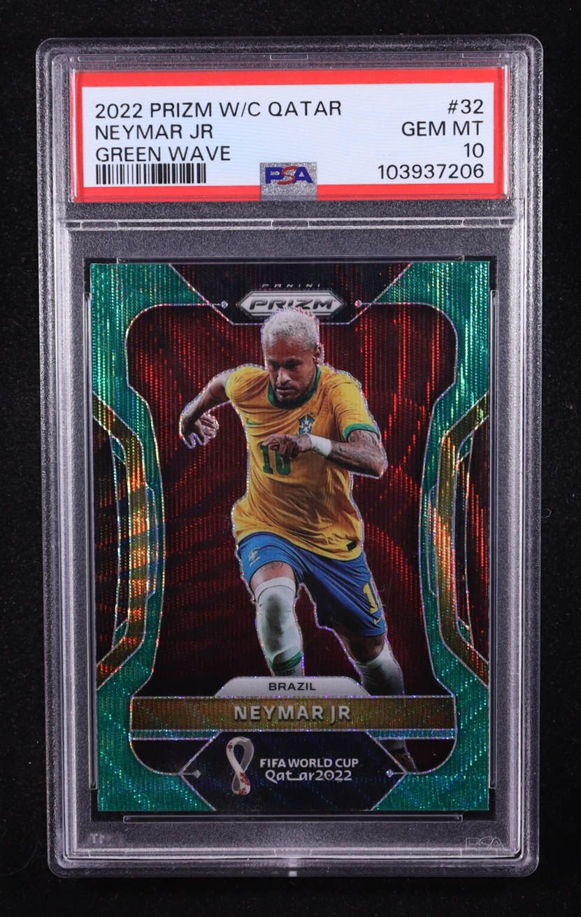Neymar Jr 2022 Panini Prizm World Cup Prizms Green Wave #32 (PSA 10)