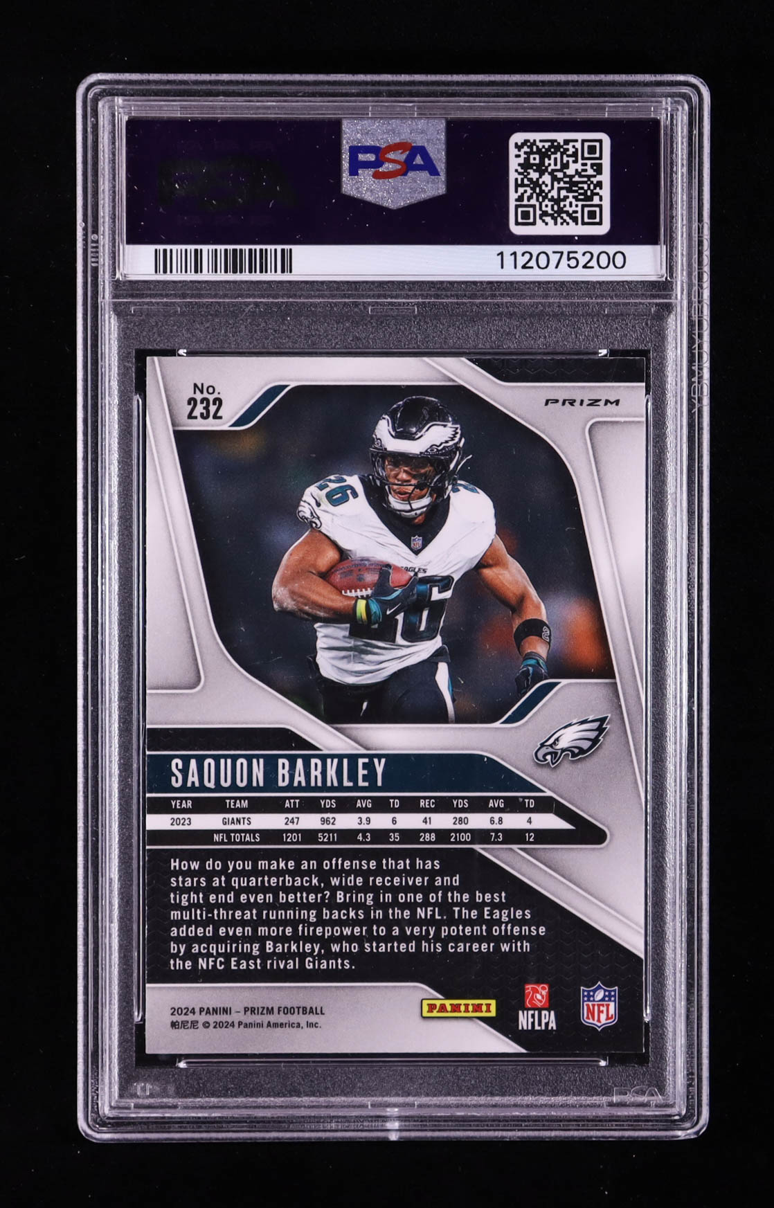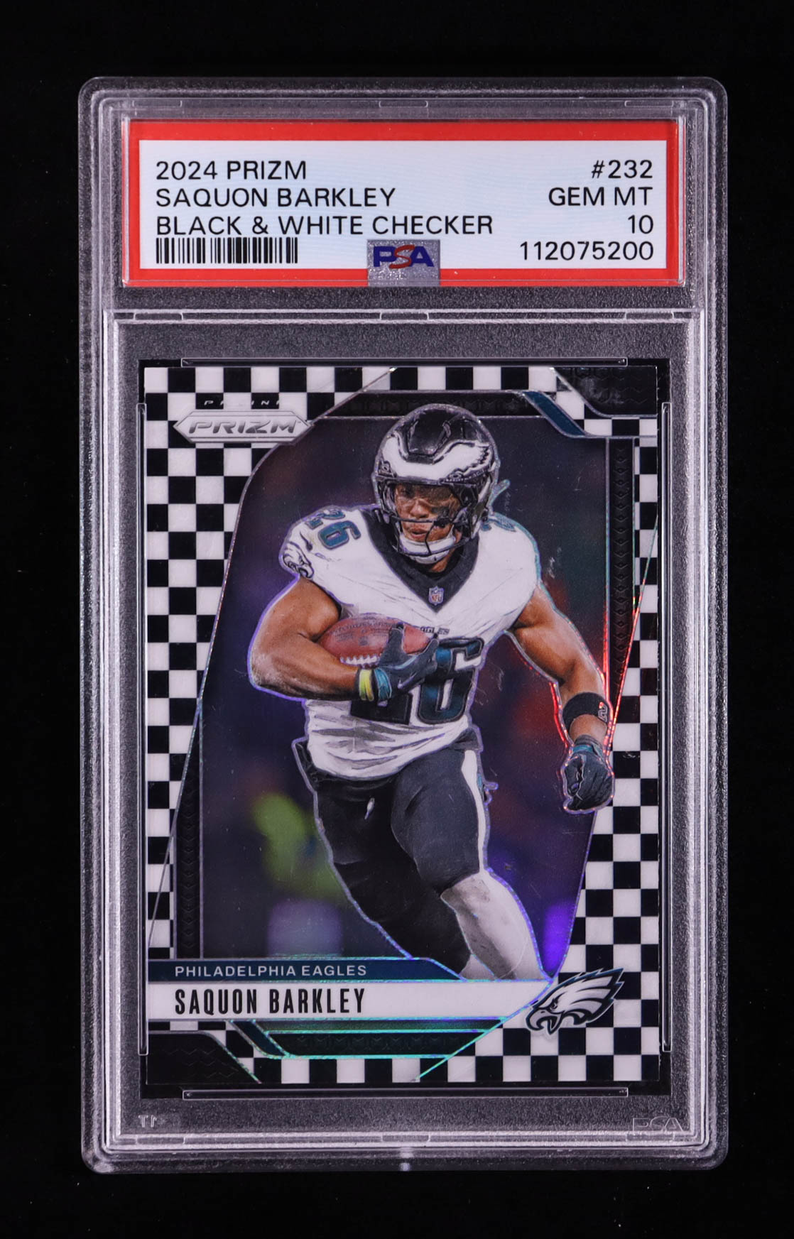 Saquon Barkley 2024 Panini Prizm Prizms Black and White Checker #232 (PSA 10)