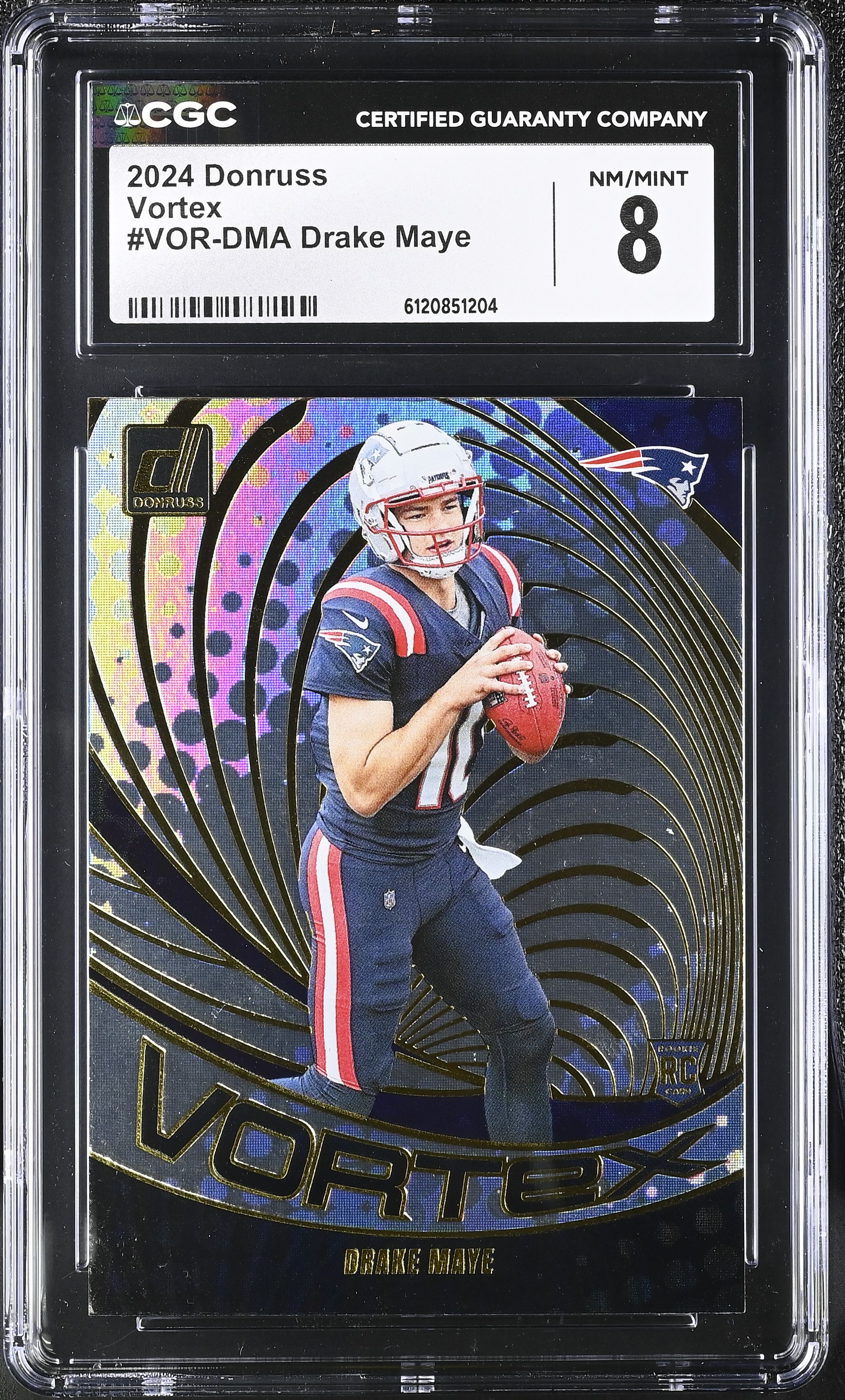 Drake Maye 2024 Donruss Vortex #10 RC (CGC 8)