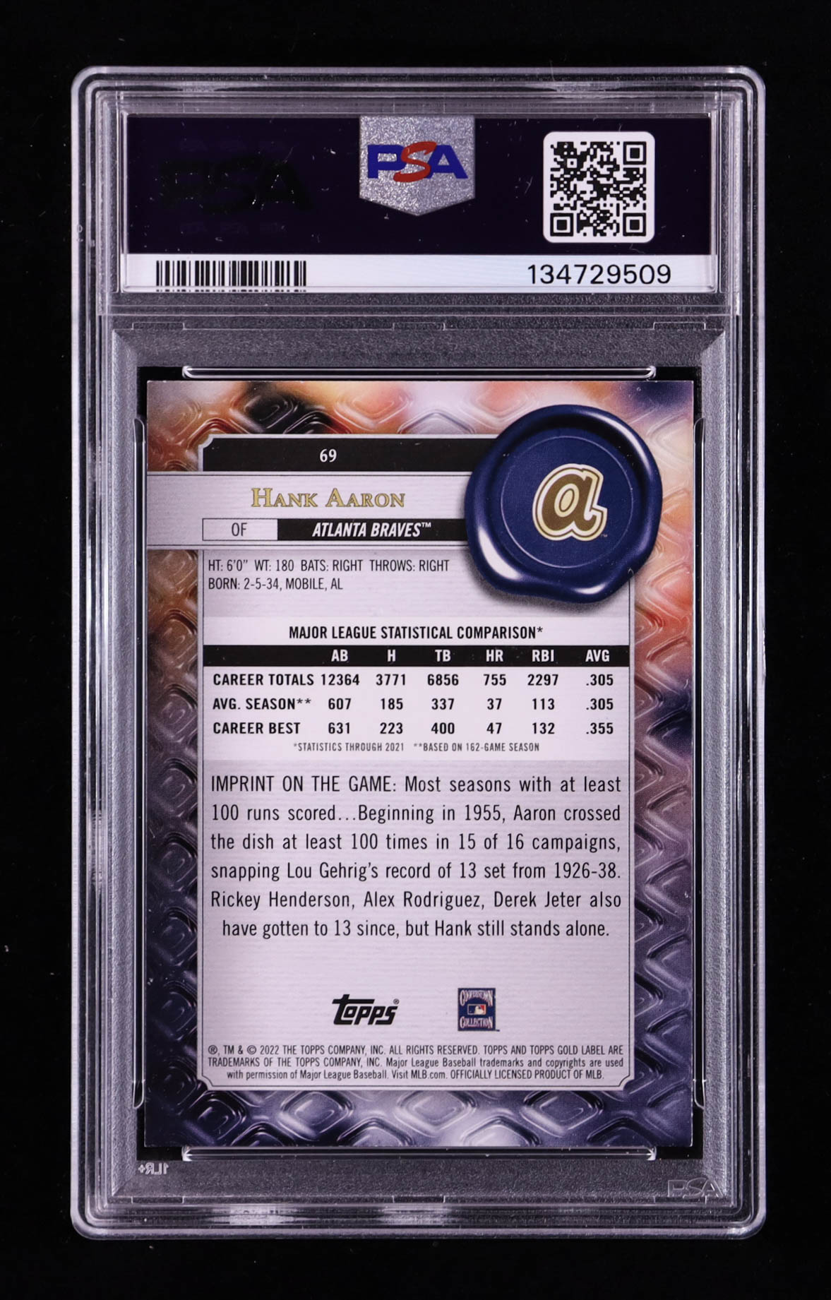 Hank Aaron 2022 Topps Gold Label Class 1 #69 (PSA 9)