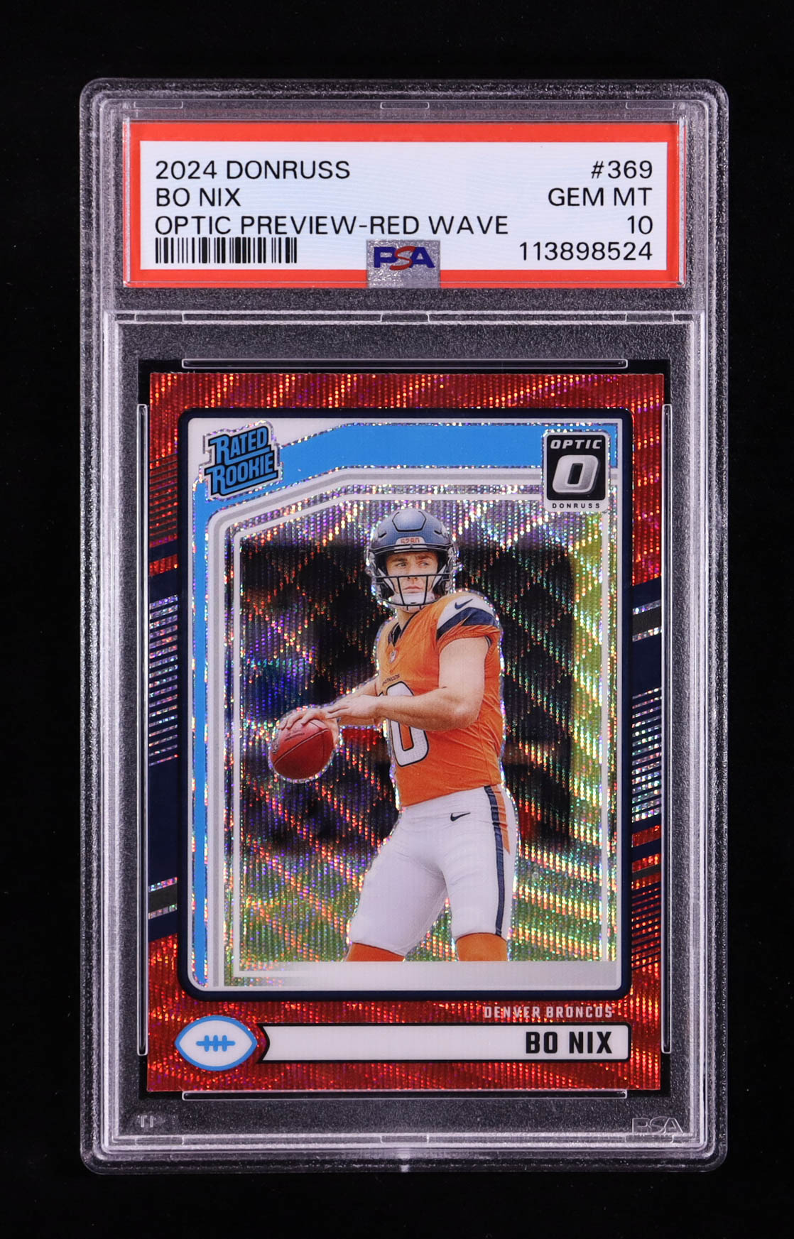Bo Nix 2024 Donruss Optic Rated Rookies Preview Red Wave #369 RC (PSA 10)