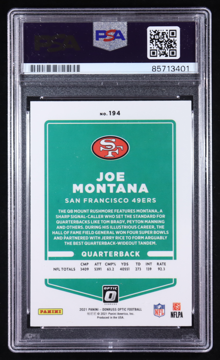 Joe Montana Signed 2021 Donruss Optic #194 (PSA)