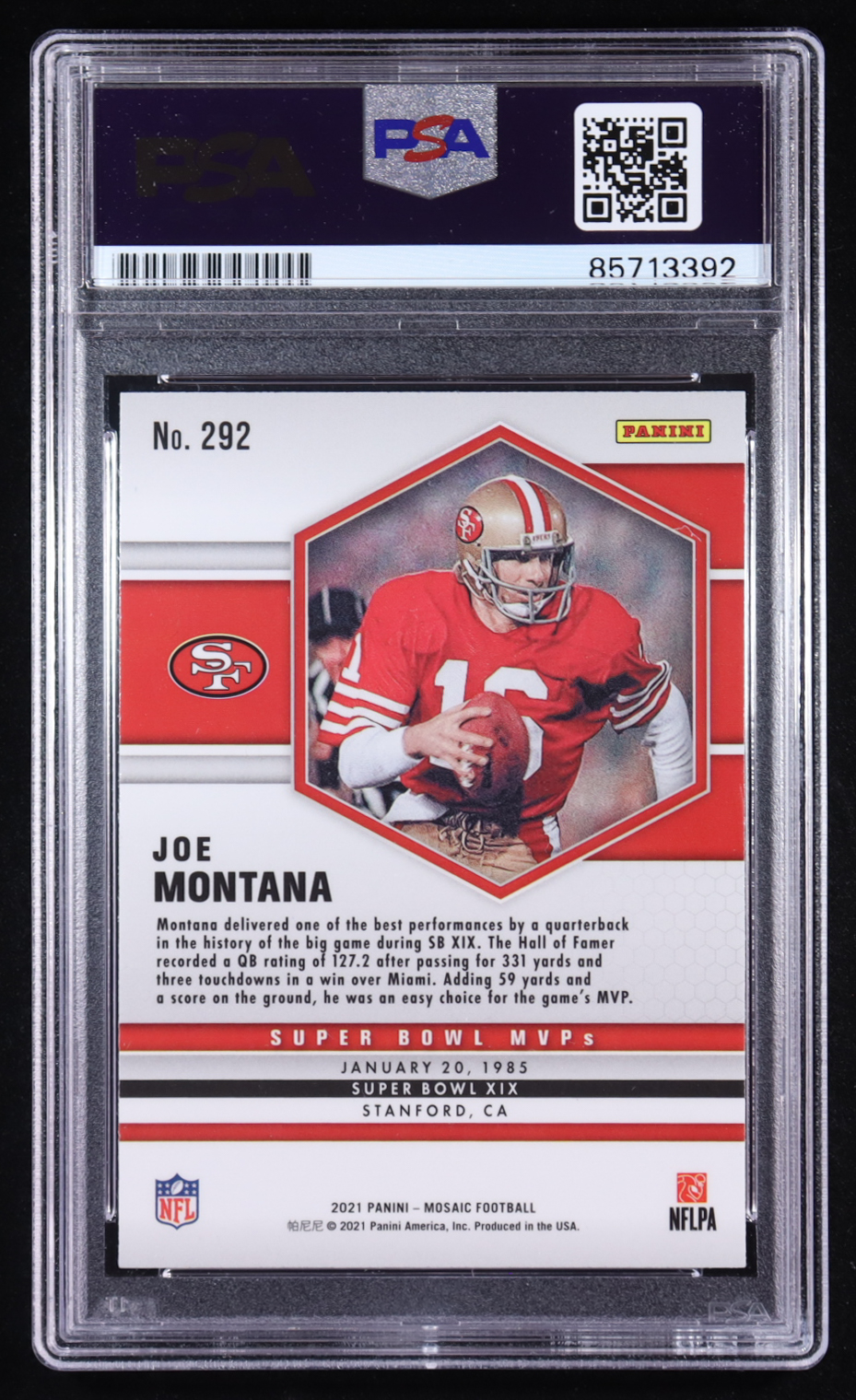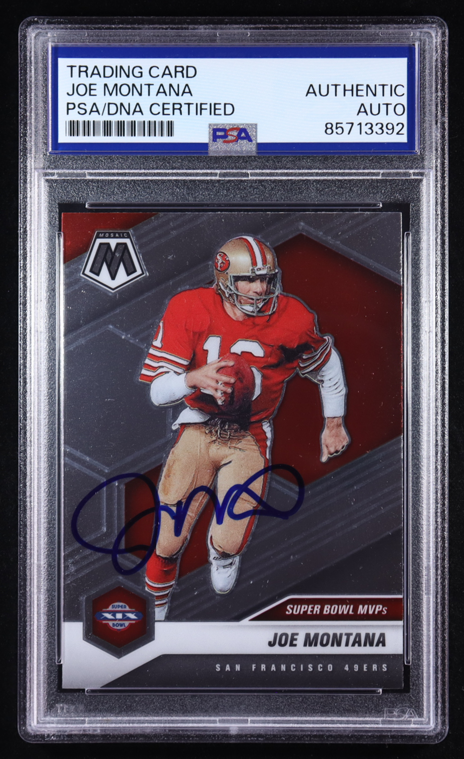 Joe Montana Signed 2021 Panini Mosaic #292 (PSA)