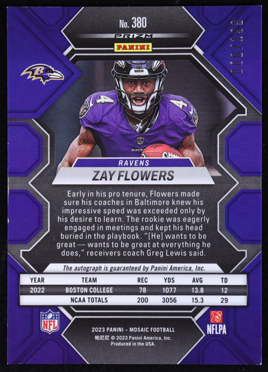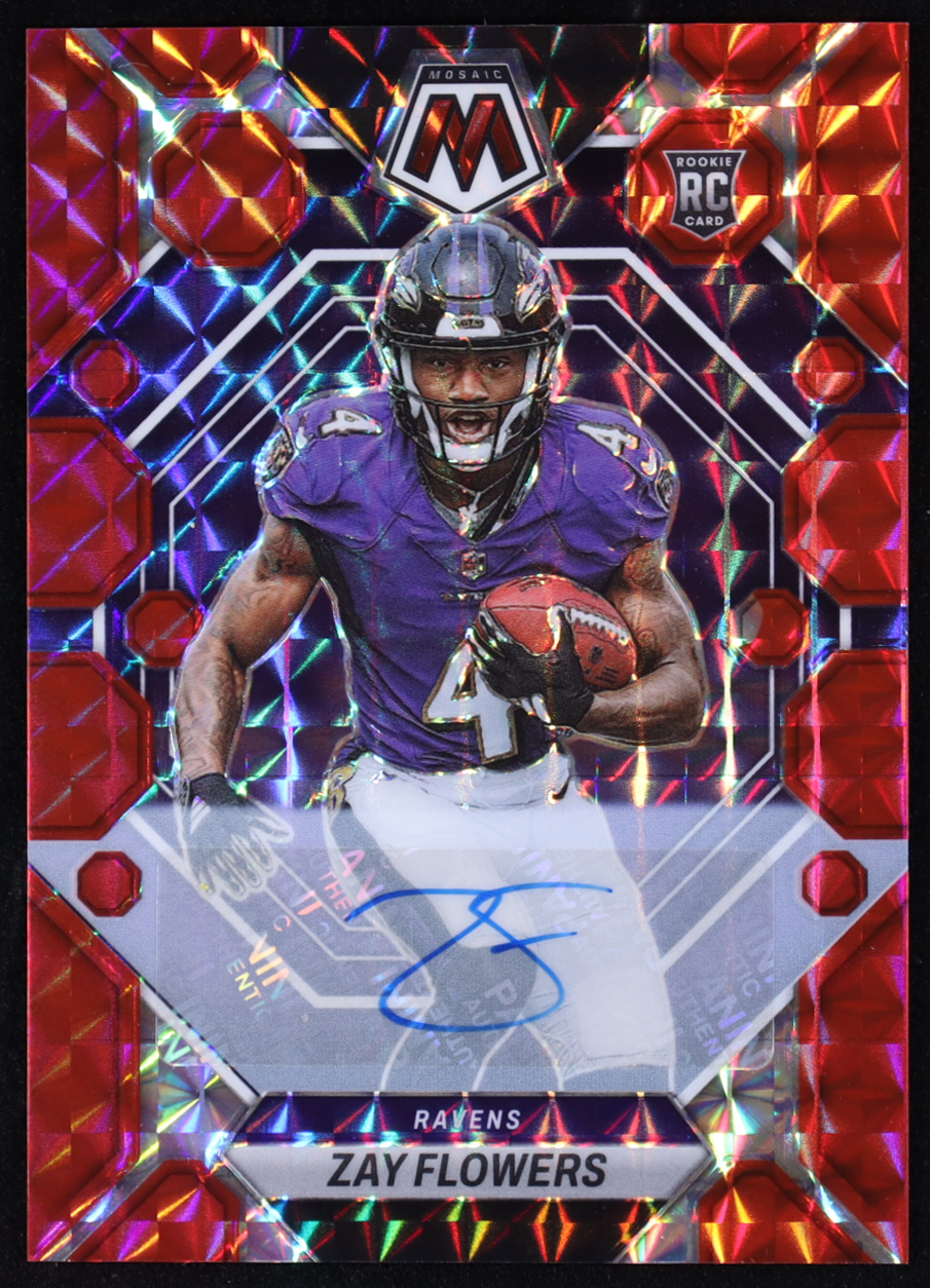 Zay Flowers 2023 Panini Mosaic Rookie Autographs Mosaic Red #380 RC #088/199