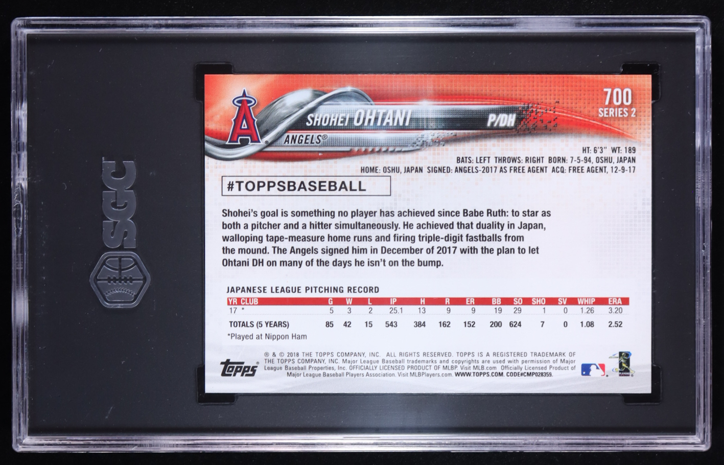 Shohei Ohtani 2018 Topps #700 RC (SGC 10)