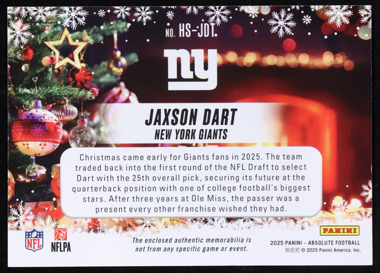 Jaxson Dart 2025 Panini Absolute Holiday Suit #HS-JDL RC