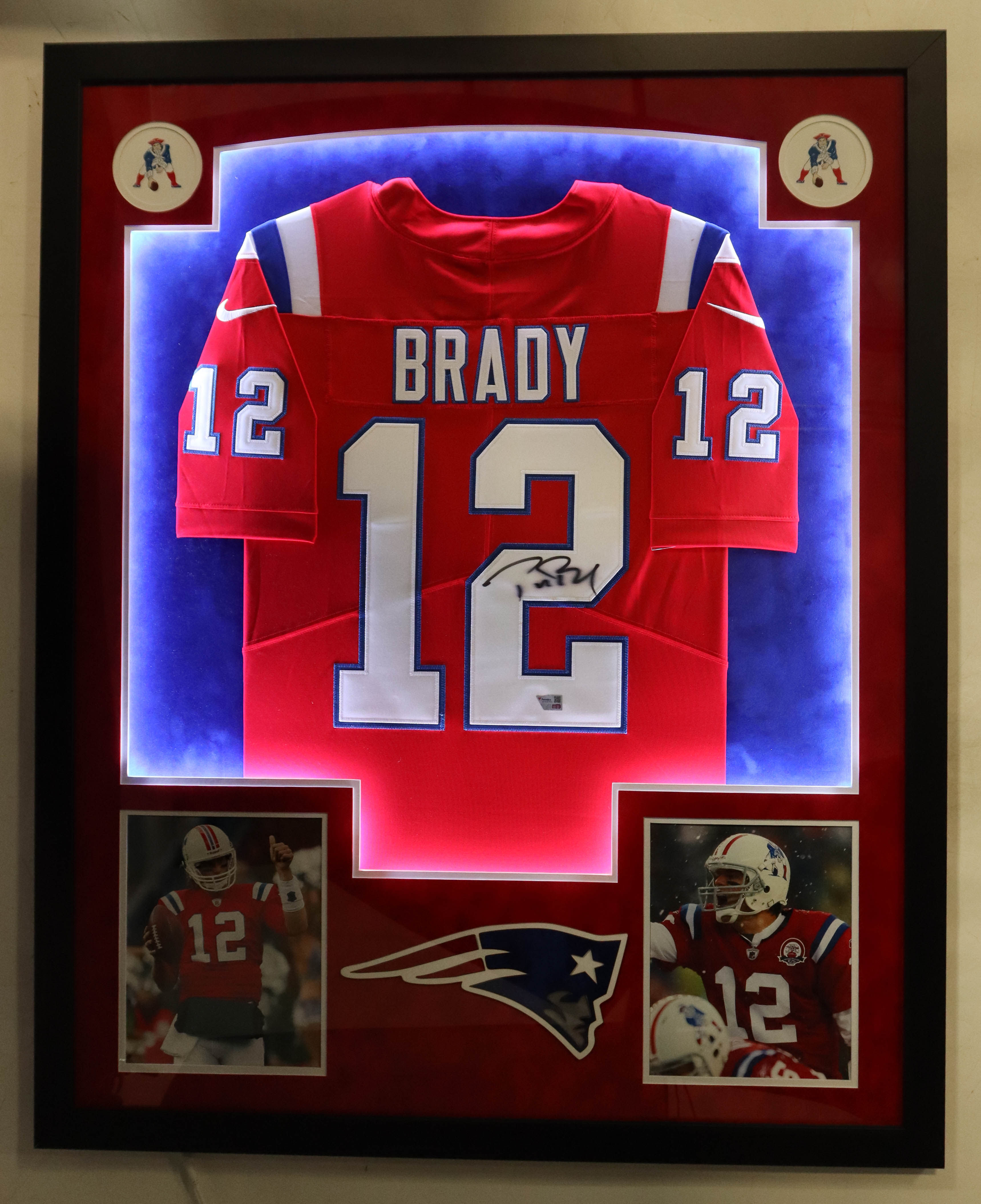 Tom Brady Signed Patriots Custom Framed Nike Jersey with LED Display & (2) Photos (Fanatics)