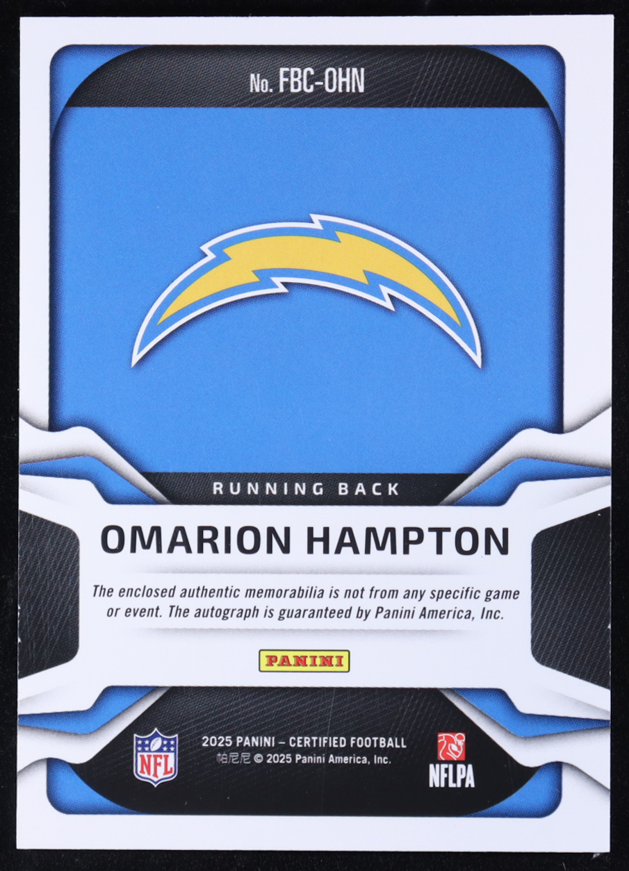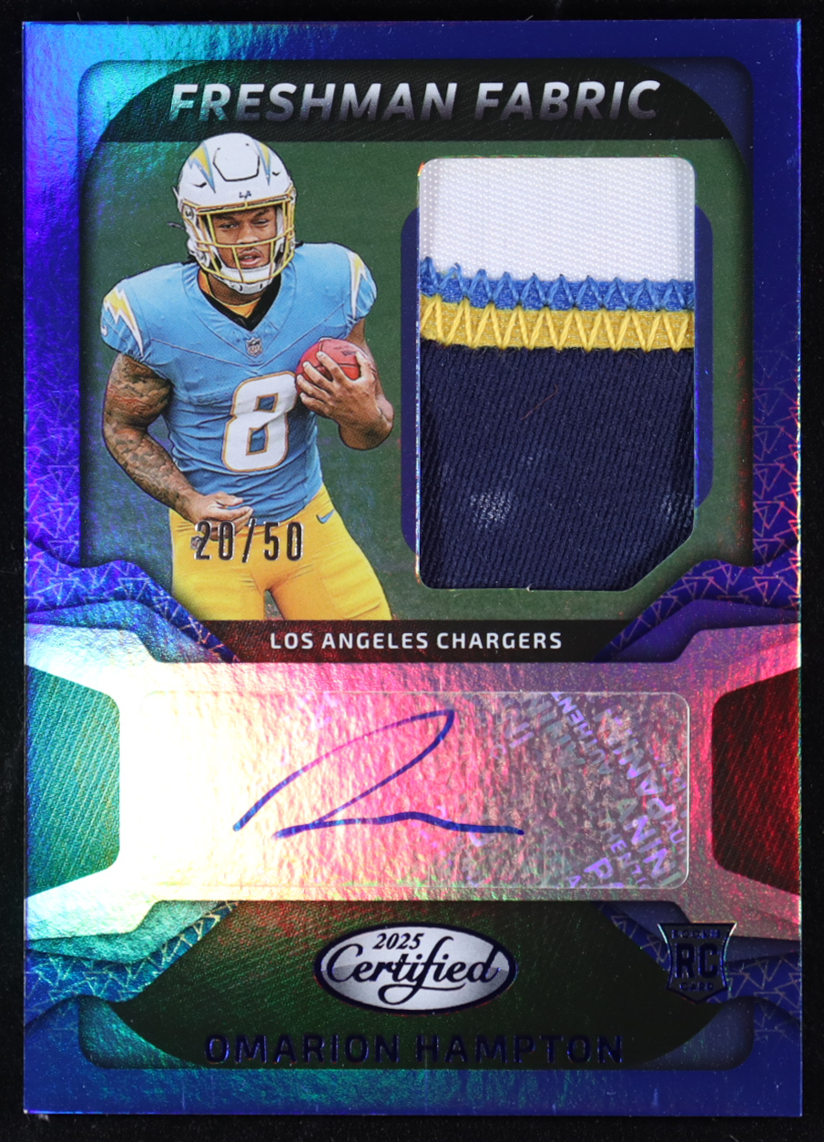 Omarion Hampton 2025 Certified Freshman Fabric Mirror Signatures Blue #30 RC #20/50