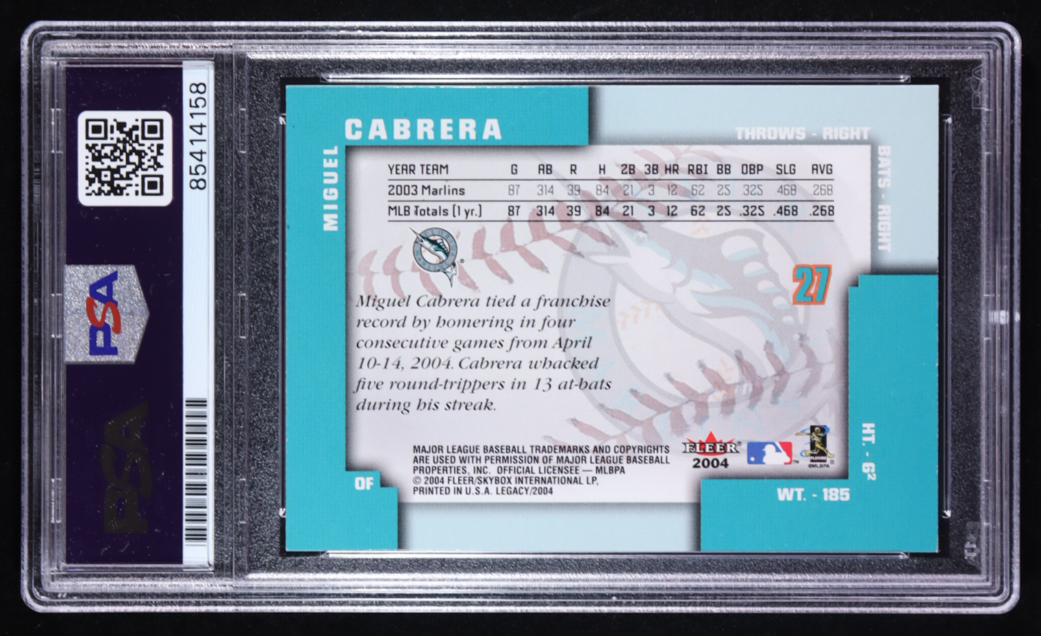 Miguel Cabrera Signed 2004 Fleer Legacy #27 (PSA)