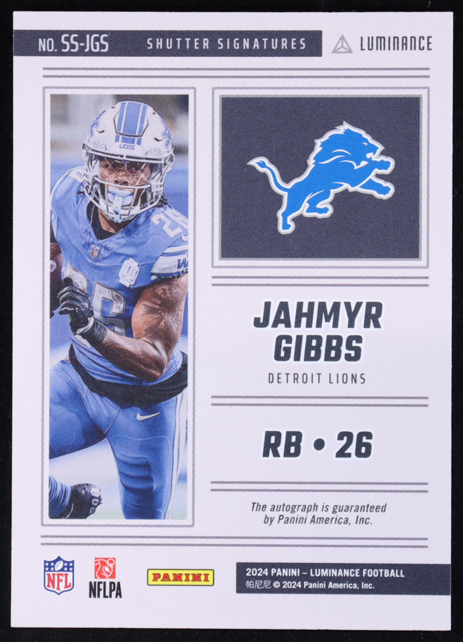 Jahmyr Gibbs 2024 Panini Luminance Shutter Signatures Gold #6 #23/50