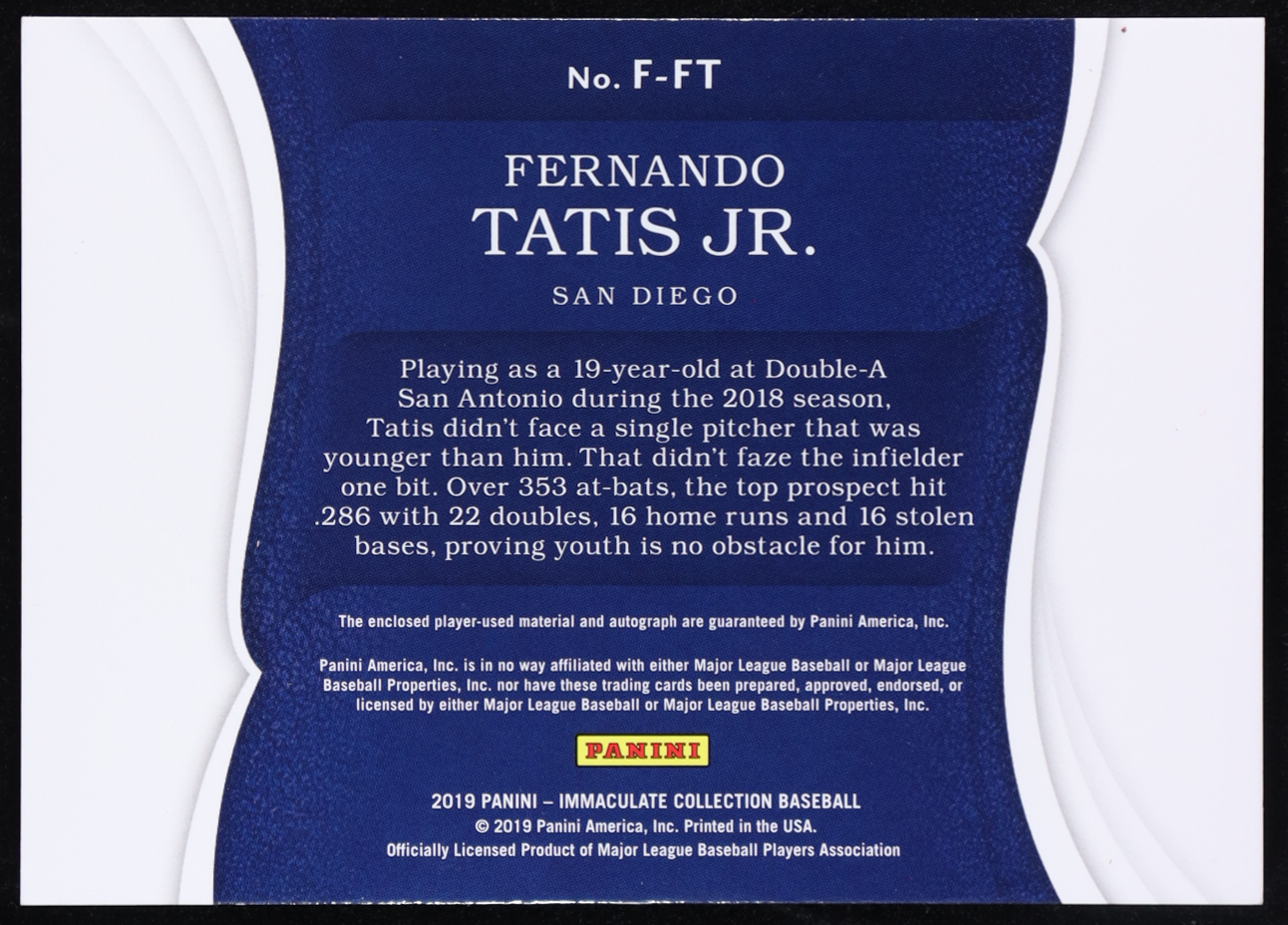 Fernando Tatis Jr. 2019 Panini Immaculate Collection Auto #F-FT RC #48/49