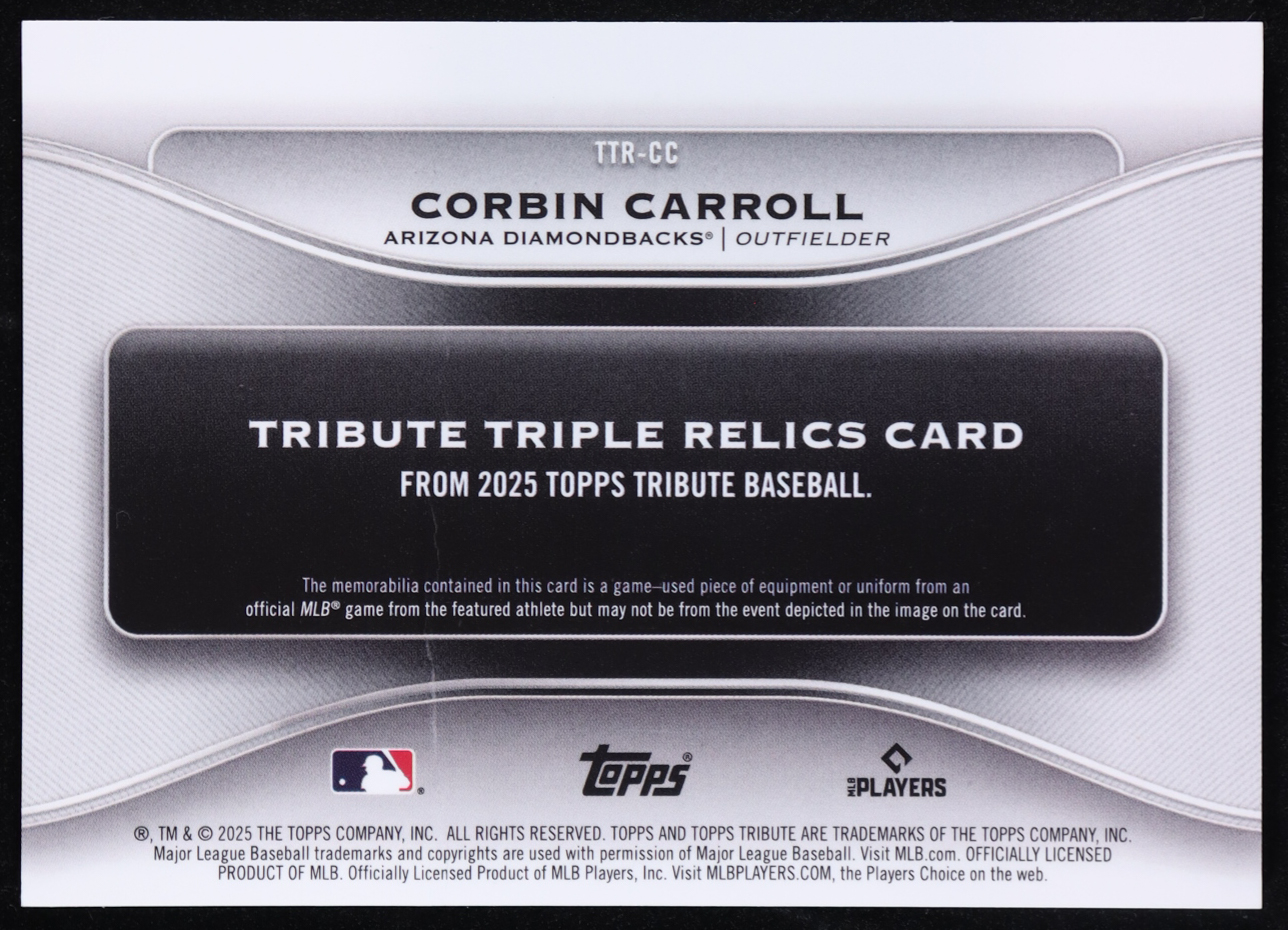 Corbin Carroll 2025 Topps Tribute Triple Relics #TTR-CC #14/25